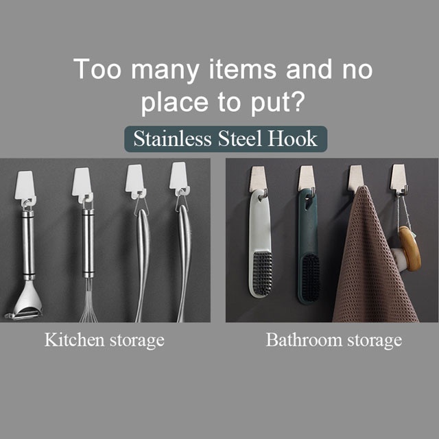 Strong Adhesive Heavy Duty Stainless Steel Hook Wall Adhesive Hooks for Kitchen Plastic Hook Wall