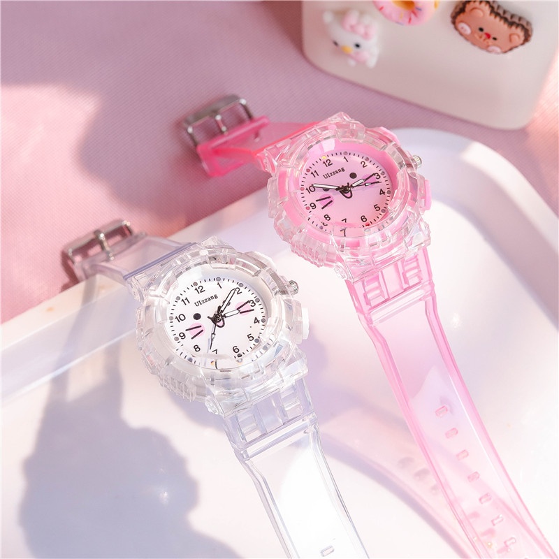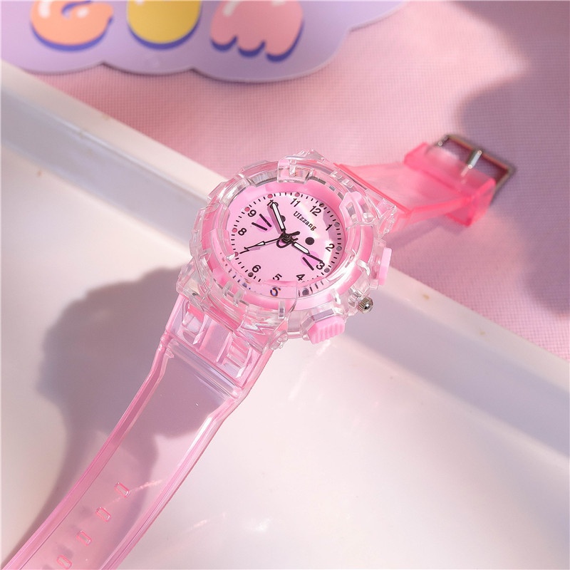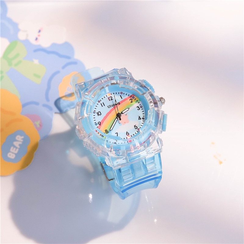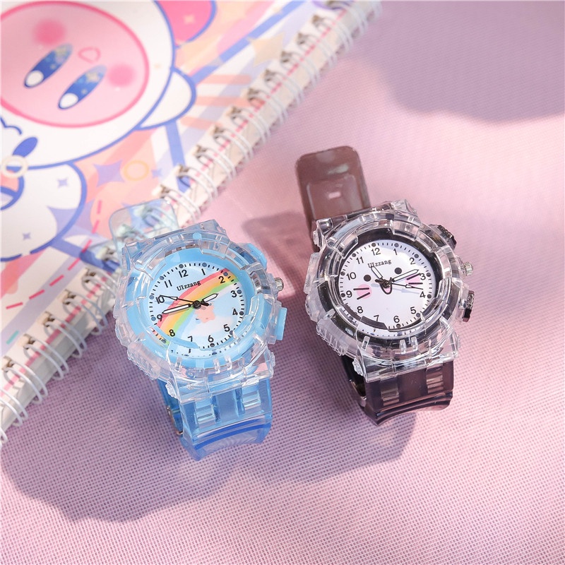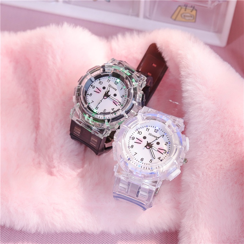 Student Children Cartoon Cat Wrist Watch with light Kids Girls Gift Plastic Band