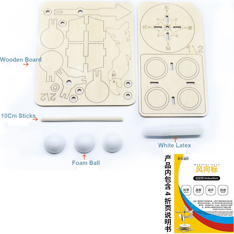 Students DIY Wind Vane Model Kit Wooden Kids Children Science Direction Speed Experiment Technology School Educational Toys