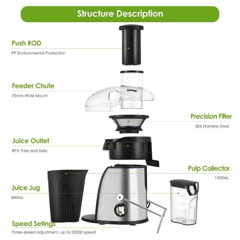 Multi functional Juicer Large Caliber stainless steel Household Automatic Fruit And Vegetable juice
