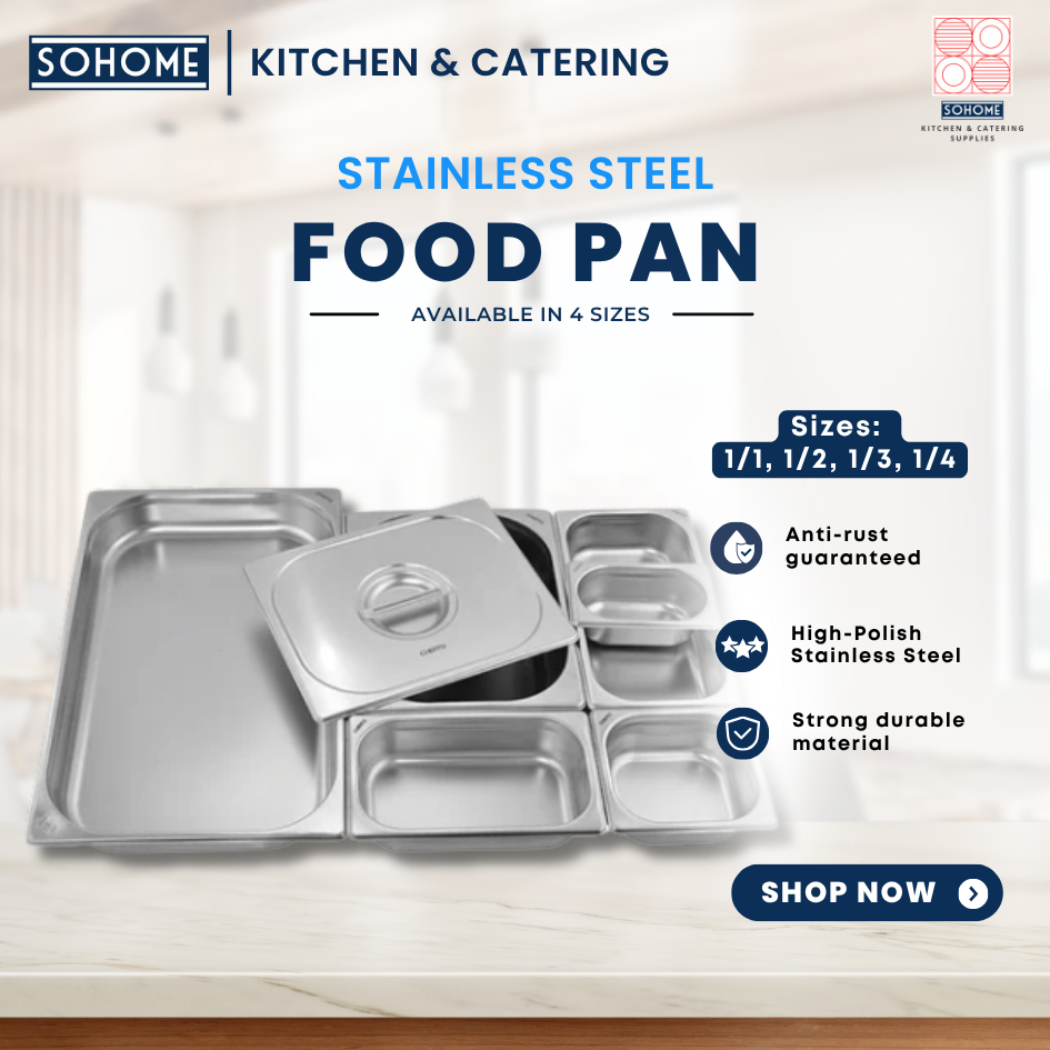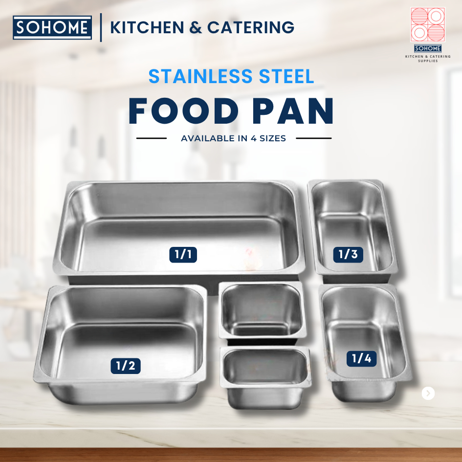 SOHOME Stainless Steel Food Pan | Full, Half, 1/3 & 1/4 Size | Multipurpose Stainless Food Pan Tray