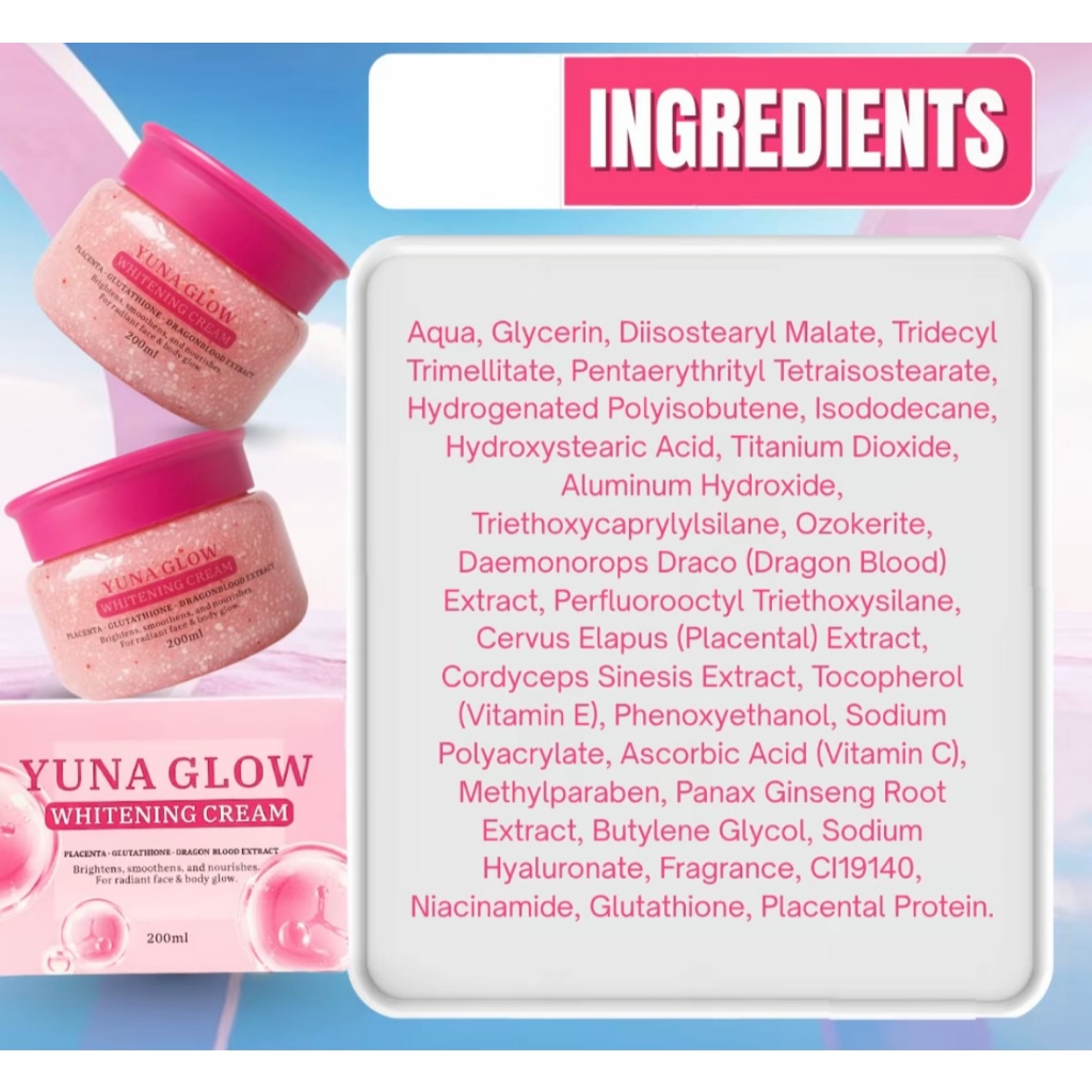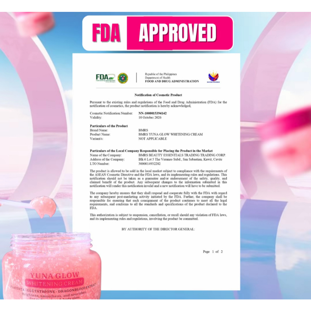 BMRS YUNA GLOW WHITENING CREAM with Placenta, Glutathione and Dragon Blood Extract for Radiant Face
