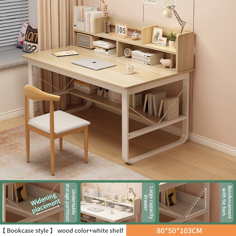 ROOSIO Furniture Study Table Computer Desk Bookshelf Integrated Simple Home Bedroom Small Student Study Desk Office Desk Bedroom Table With Shelf