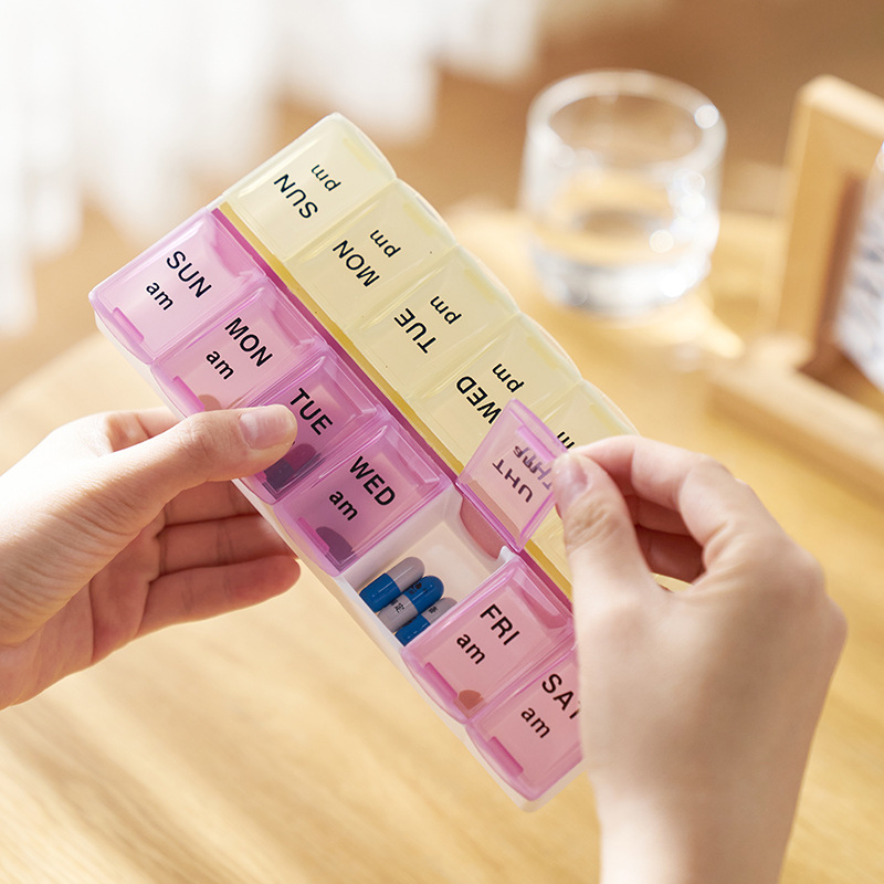 Large Capacity 14-Compartment Weekly Pill Organizer - Creative Portable Storage Box for Medications & Tablets