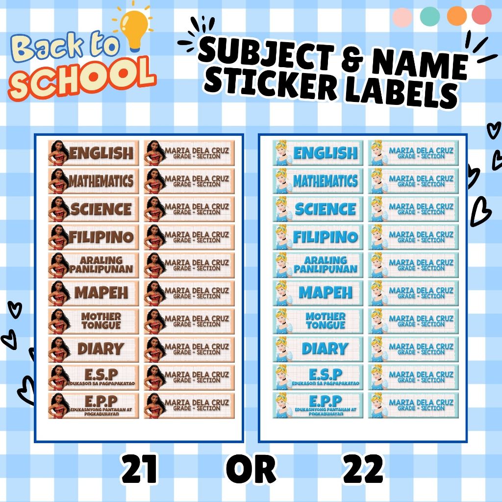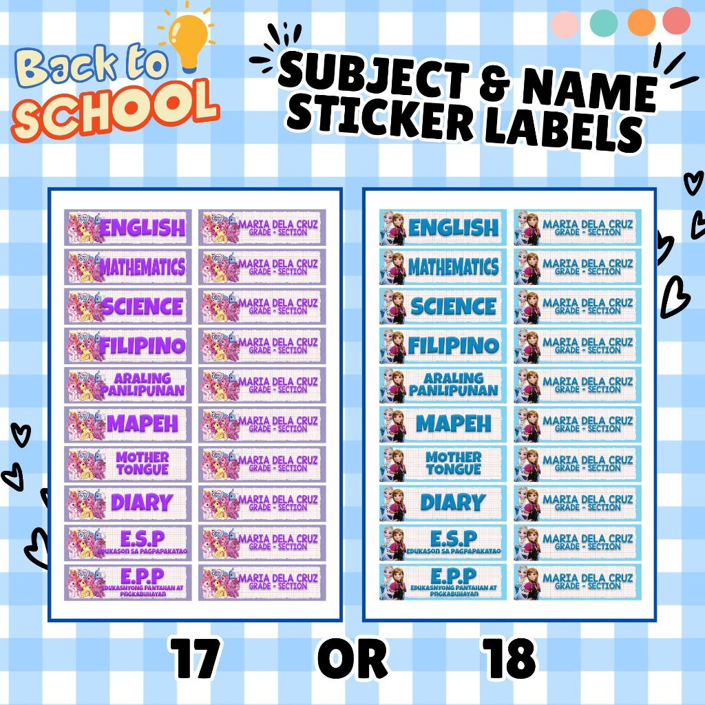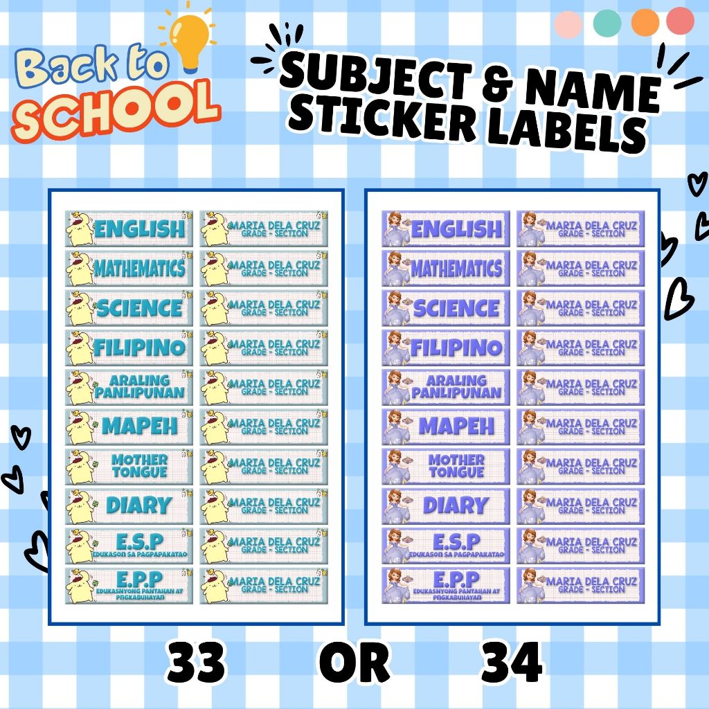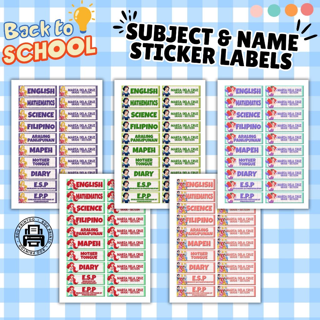 Subject Labels - Name & Section Labels - Personalized - Easy Peel Labels - Part 1