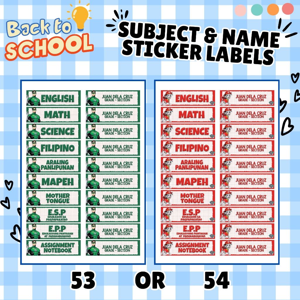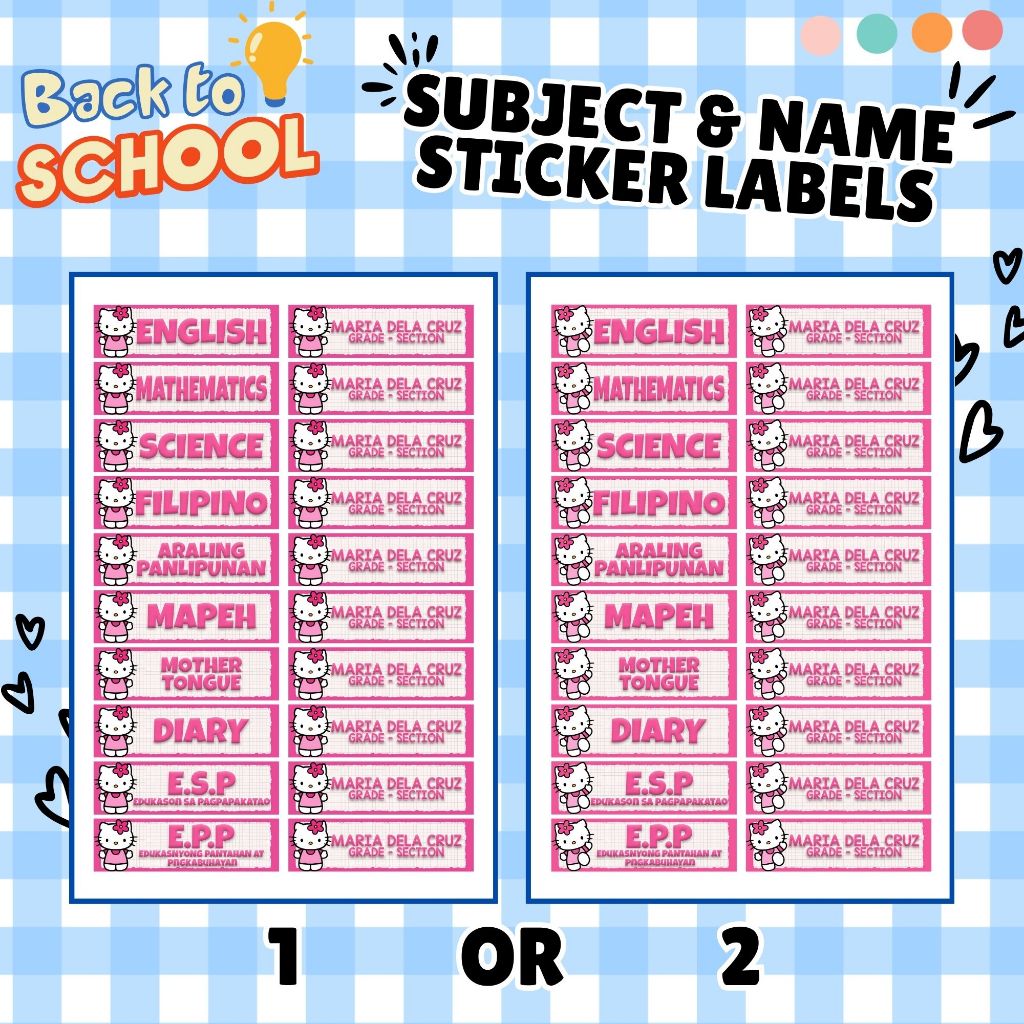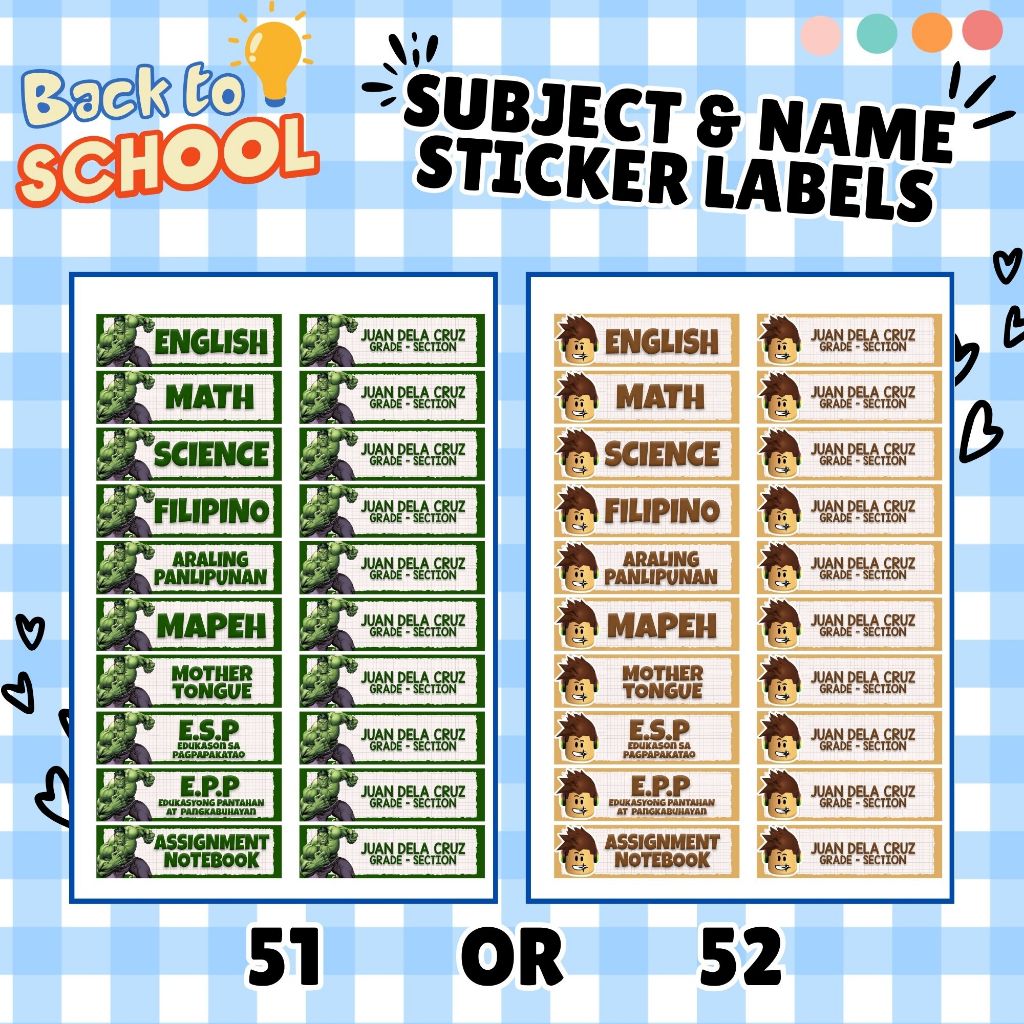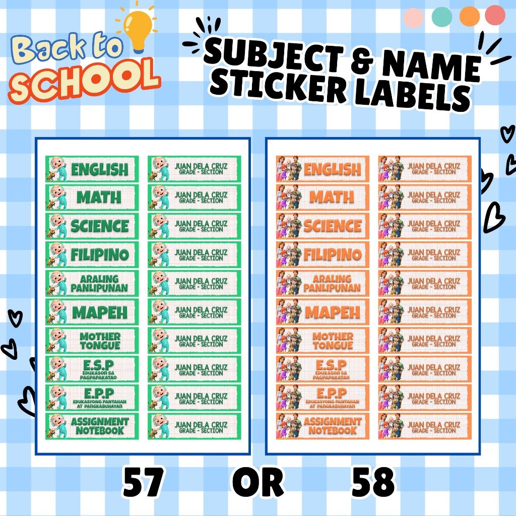 Subject Labels - Name & Section Labels - Personalized - Easy Peel Labels - Part 1