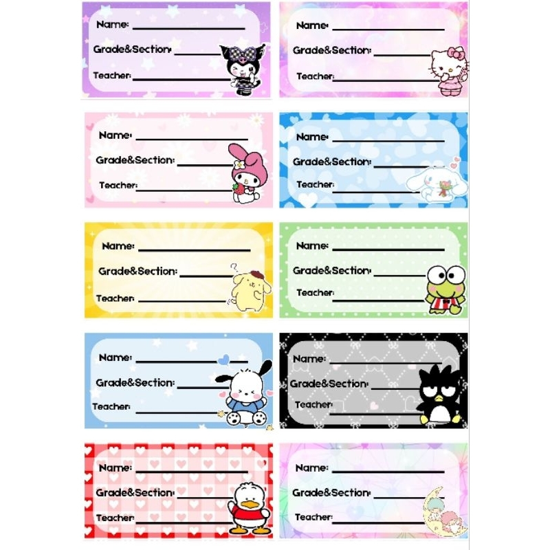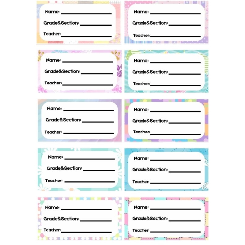 Subject / Name / Number Stickers (per set)