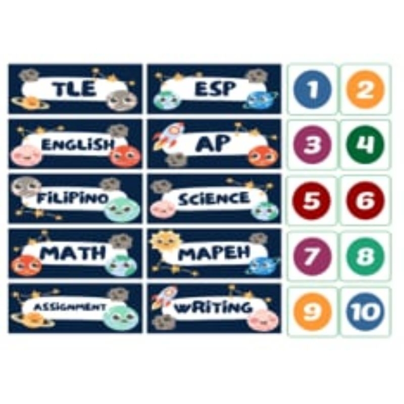 Subject Sticker for Elementary Grade 1 to Grade 6 with numbers to 10