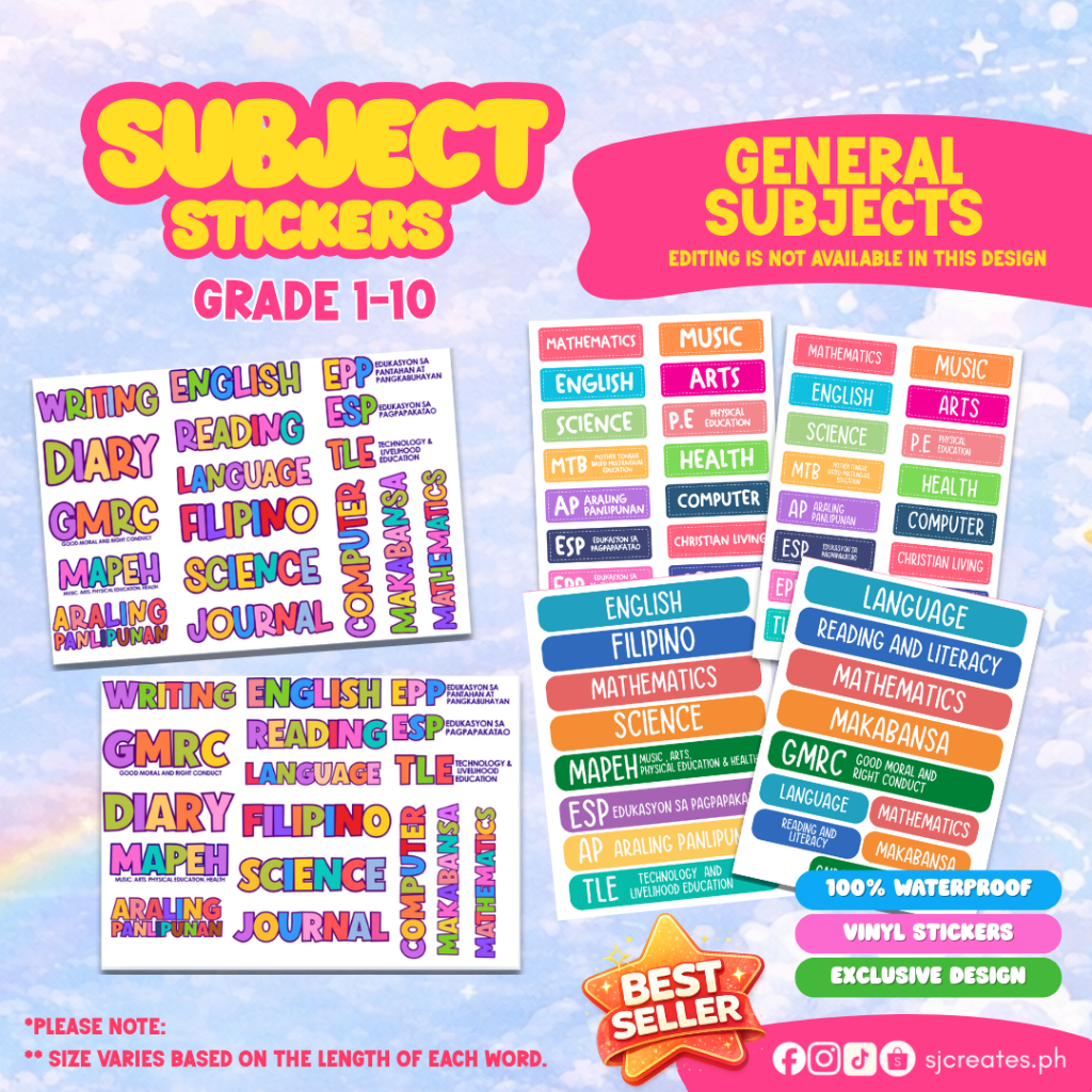Subject Sticker for Grade 1-10 | Stickers for Notebook | Subject Stickers