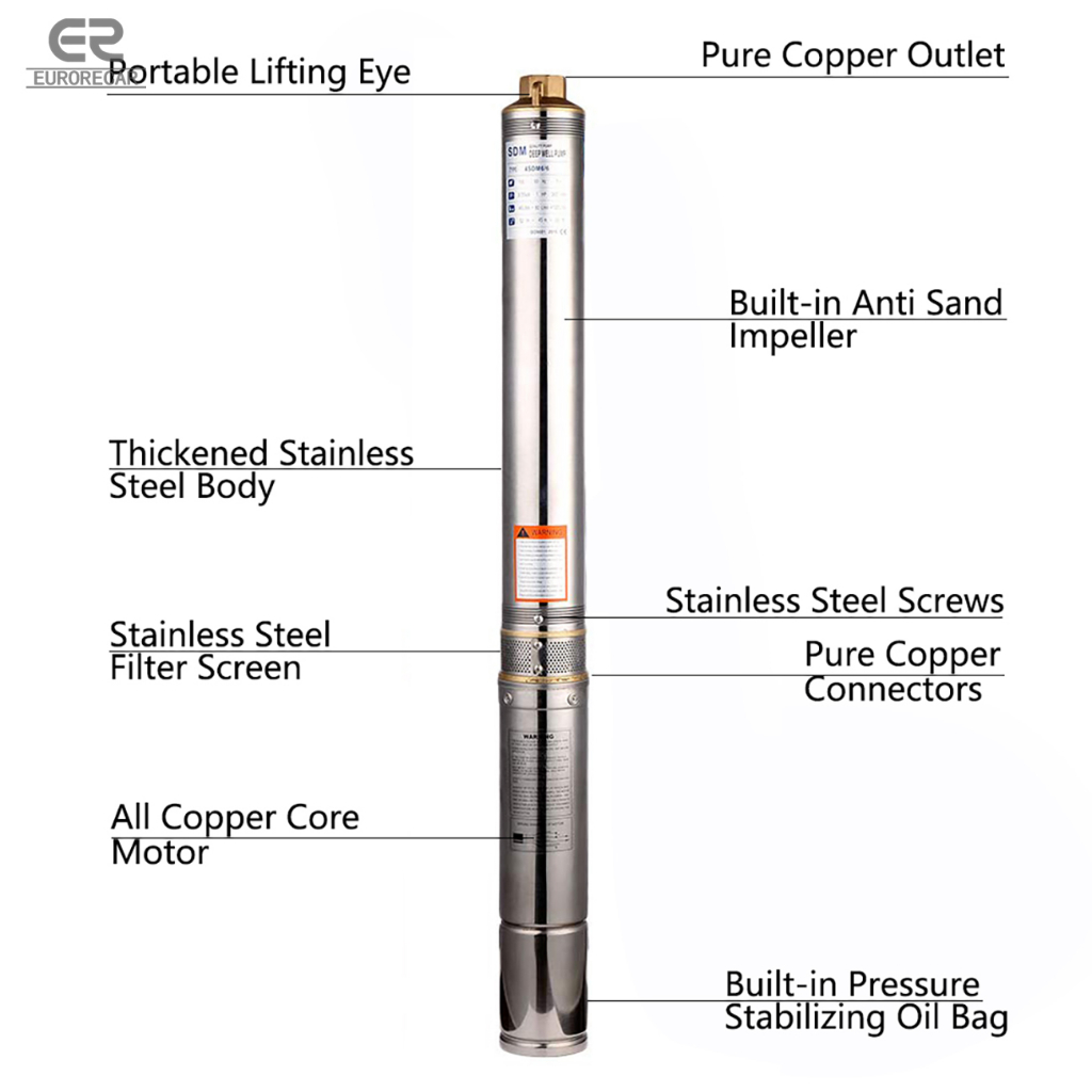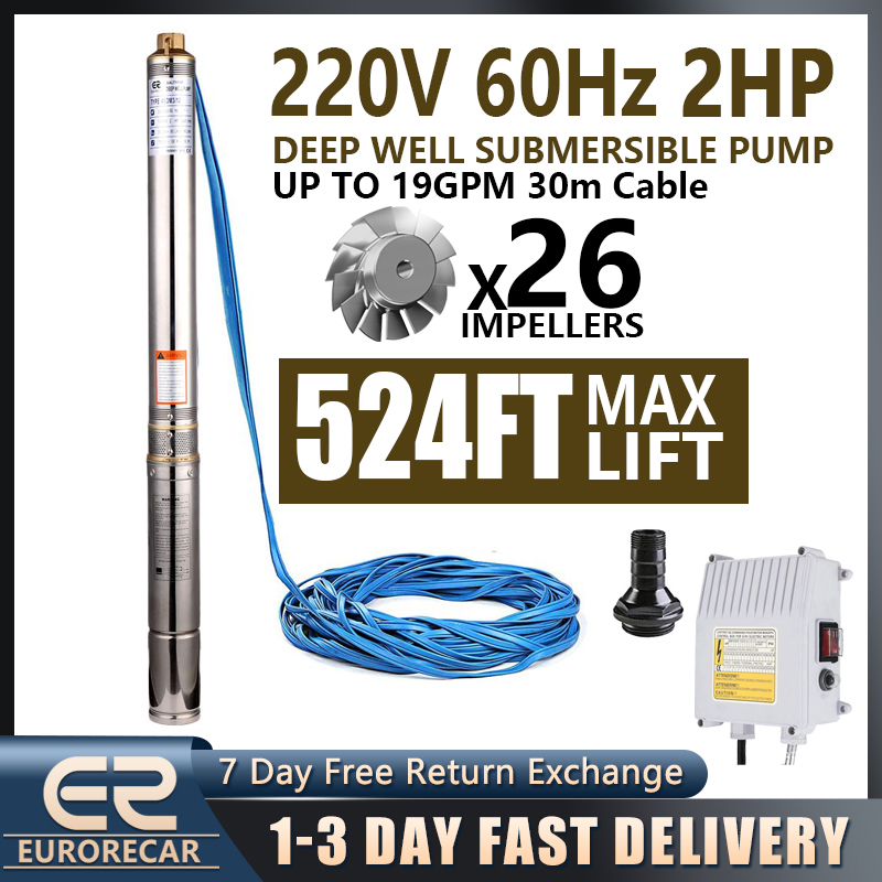 Submersible Pumps 220V 3" Stainless Steel Single Phase Deep Well Bore Water Pump with Control Box