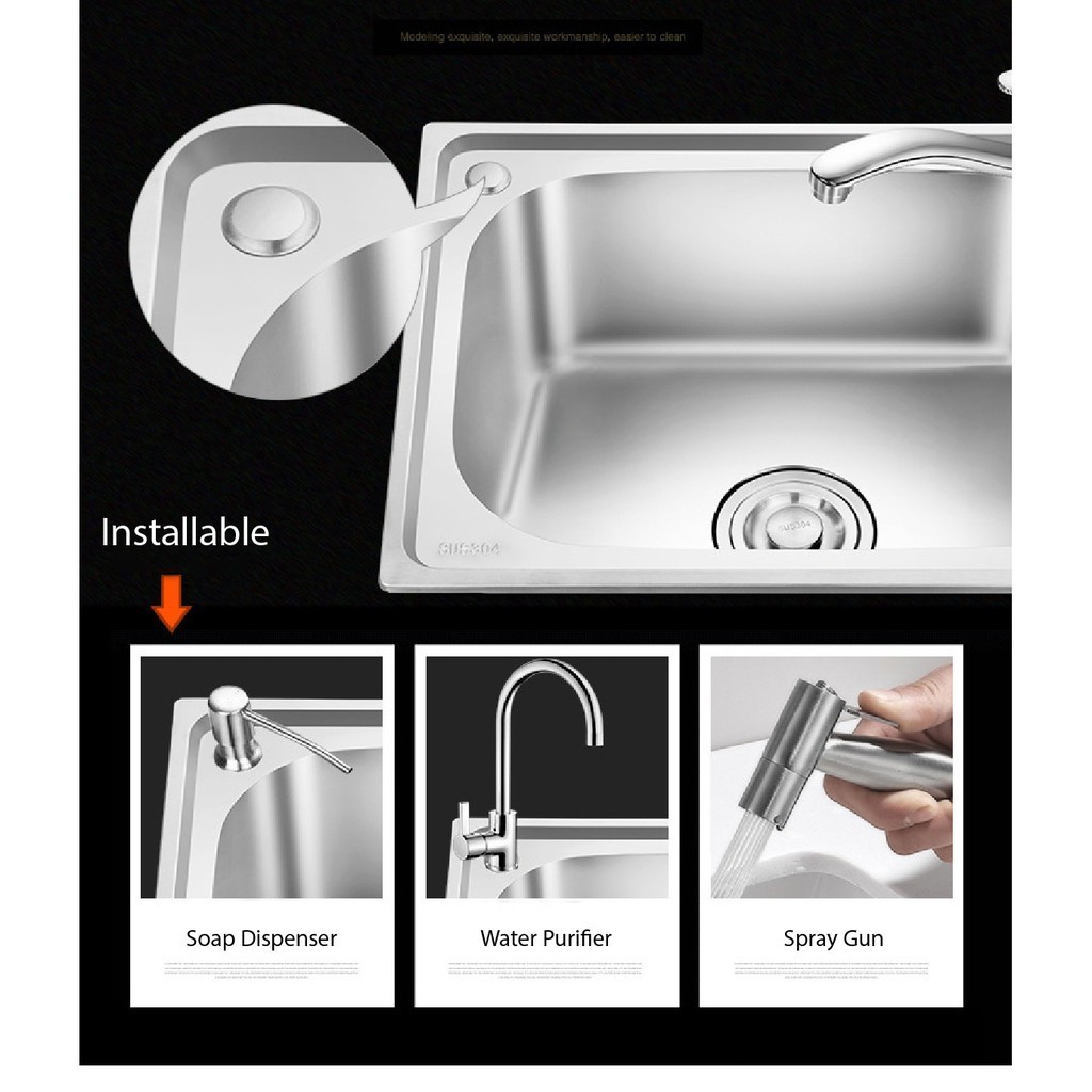 Suez Single Double Kitchen Sink 304 Stainless Lababo Sink Set With Faucet Pro Free Drain&Basket