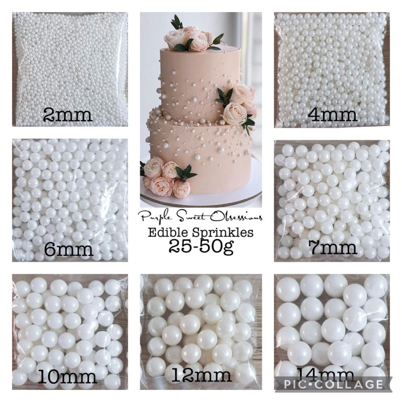 Sugar Pearls / Edible Pearl Dragees / Candy Sprinkles for Cake Decoration 25grams and 50grams pouch