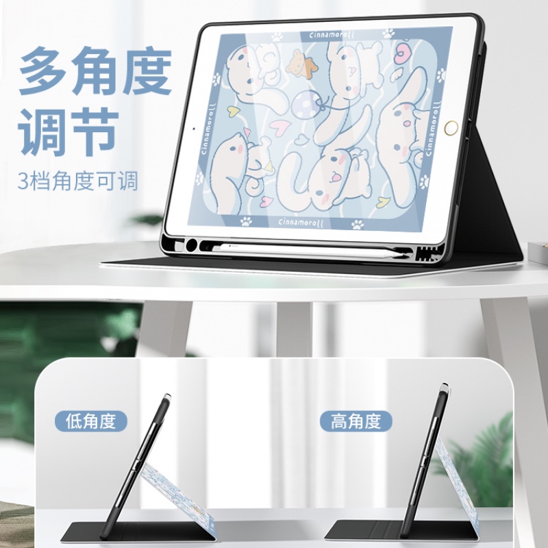 Suitable For Tablet Protective Case iPad 2021 with Pen Slot Mini4/5/6 Cartoon Cute Cinnamoroll 10.9 Silk Material Air3/4/5 iPad Gen 10 iPad Case