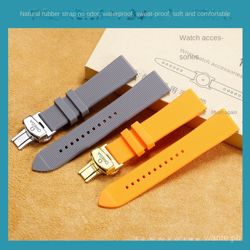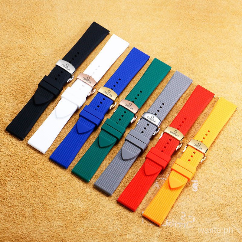 Suitable for OMEGA silicone strap 18mm 19mm 20mm OMEGA Swatch joint metal butterfly buckle folding buckle SPEEDMASTER Aqua Terra De Ville series men's and women's watch rubber band