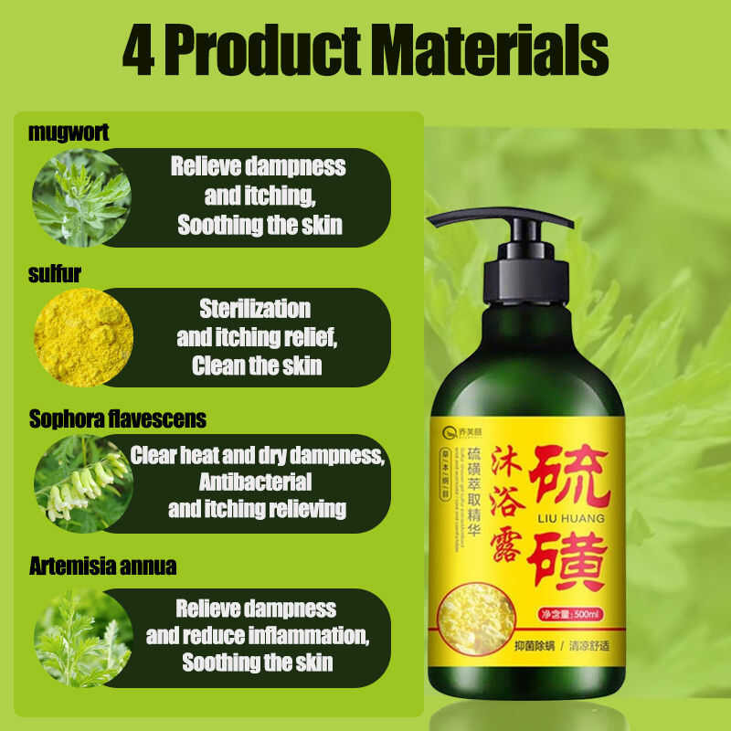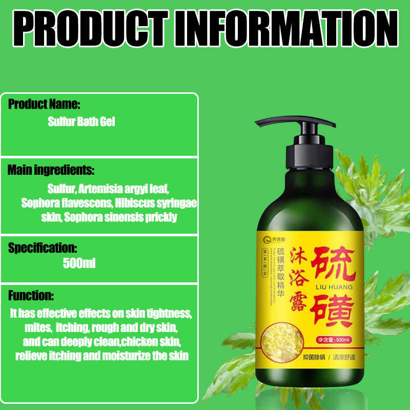 Sulfur Wormwood Shower Gel, Anti Mite, Eczema, Urticaria, Rash, Mosquito And Insect Repell