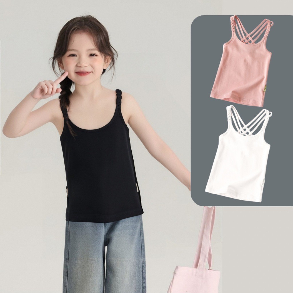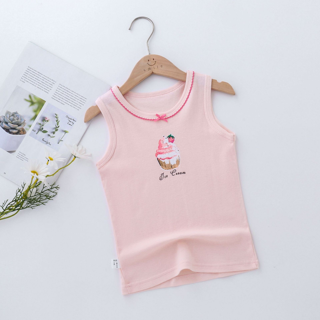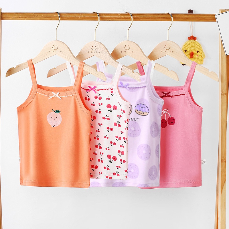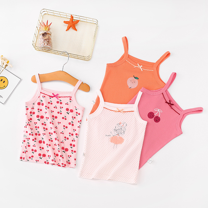 Summer Fashion Spaghetti Strap Sando for Girls 100% Cotton Cute Printed Design Korean Sleeveless Tops for Kids Girls