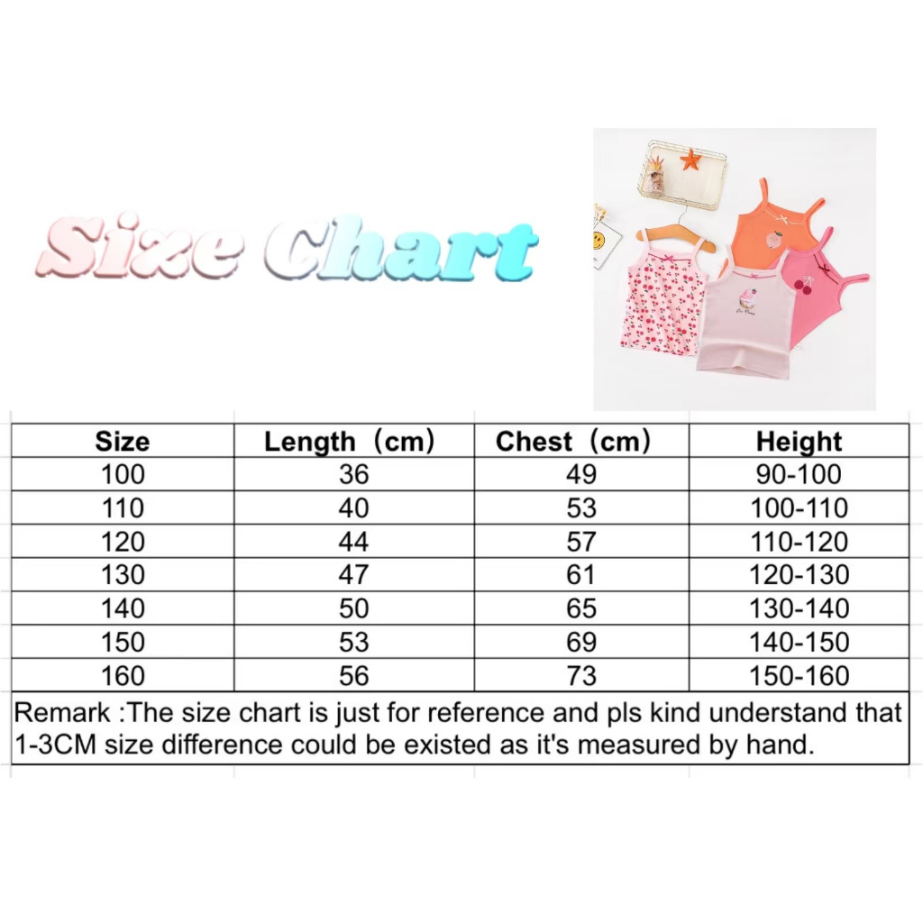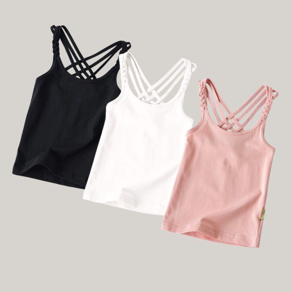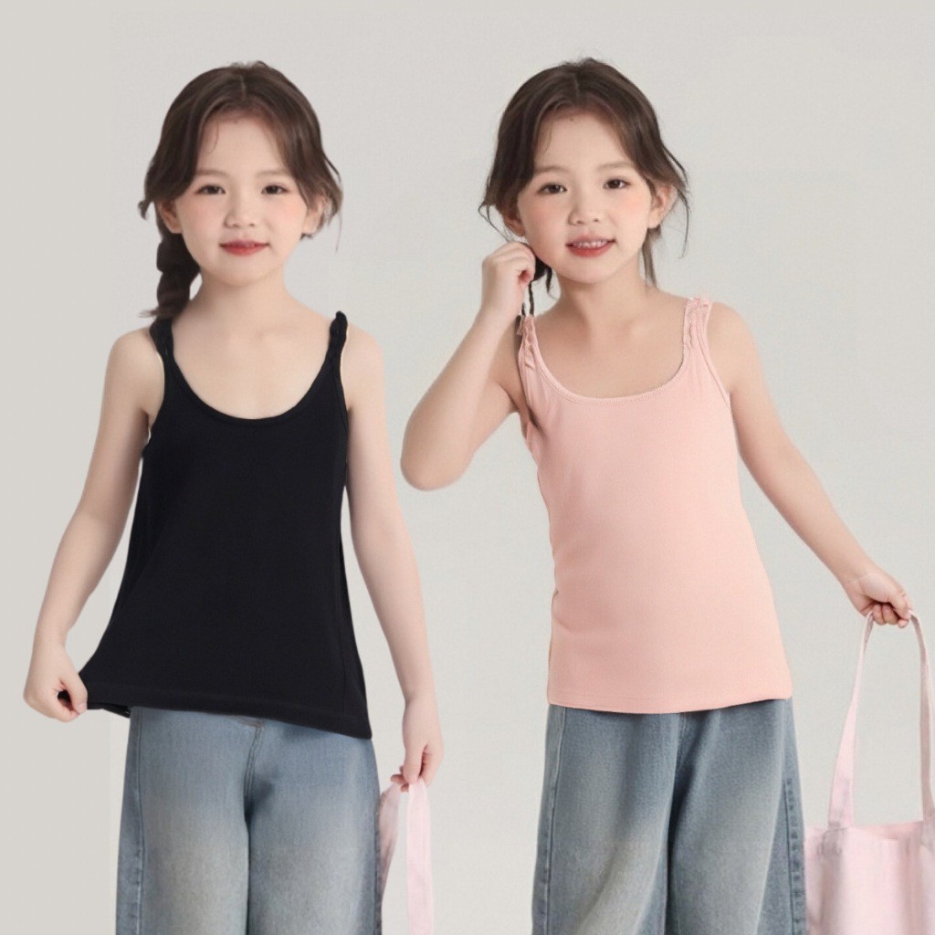 Summer Fashion Spaghetti Strap Sando for Girls 100% Cotton Cute Printed Design Korean Sleeveless Tops for Kids Girls