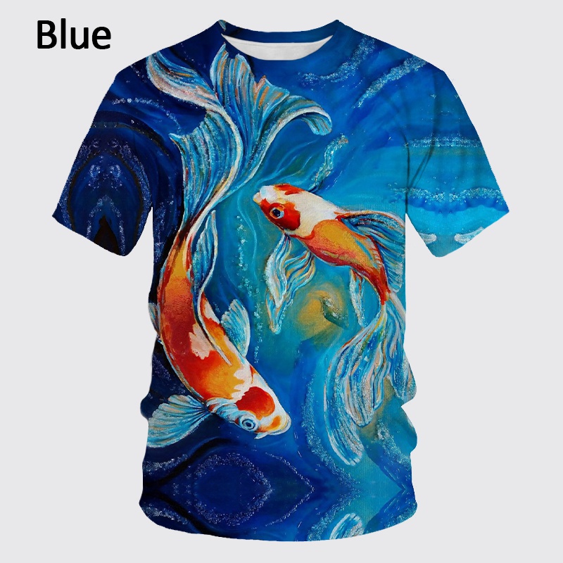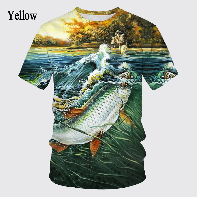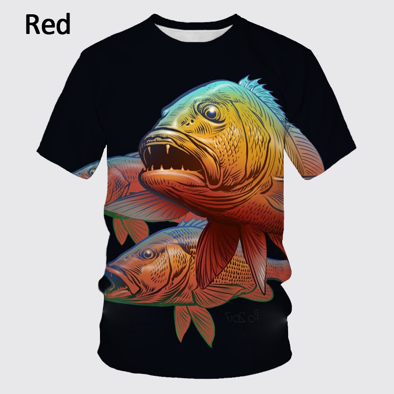 Summer Fishing Enthusiasts 3D Printed Fish Pattern T-shirt Ferocious Fish Short-sleeved Carp T-shirt Round Neck T-shirt