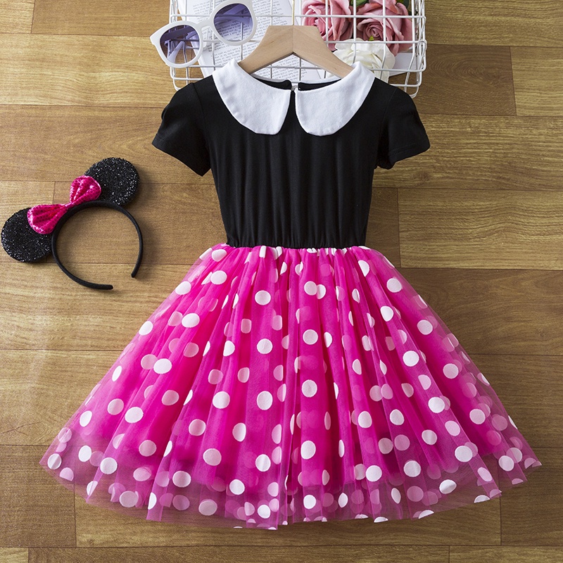 Summer Girls' Mickey Party Theme Polka Dot Dress Performance Dress Daily Casual Dress Mickey Mouse Cute Hairband