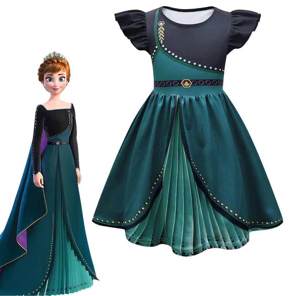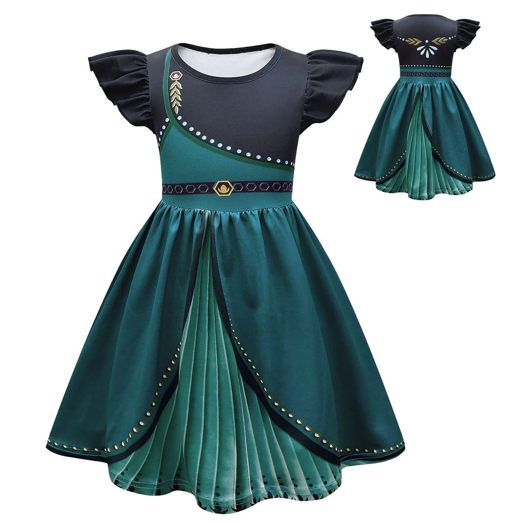 Summer Kids Girls Dresses For Clothes Frozen 2 Elsa Anna Princess Summer Evening Dress Flying Sleeve A-Line Birthday Girl Outfits