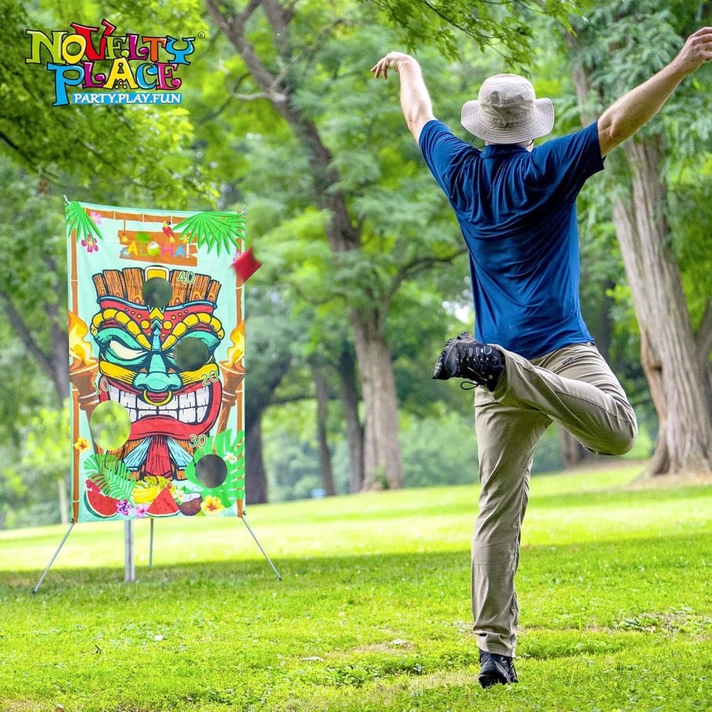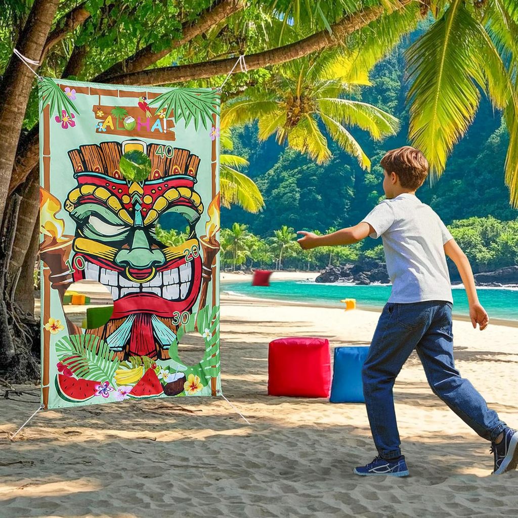Summer Luau Hawaii Toss Game Set with Bean Bags - Fun Tiki Hawaiian Party Activities for Kids and Adults, Tropical Carnival Outdoor Games and Decorations