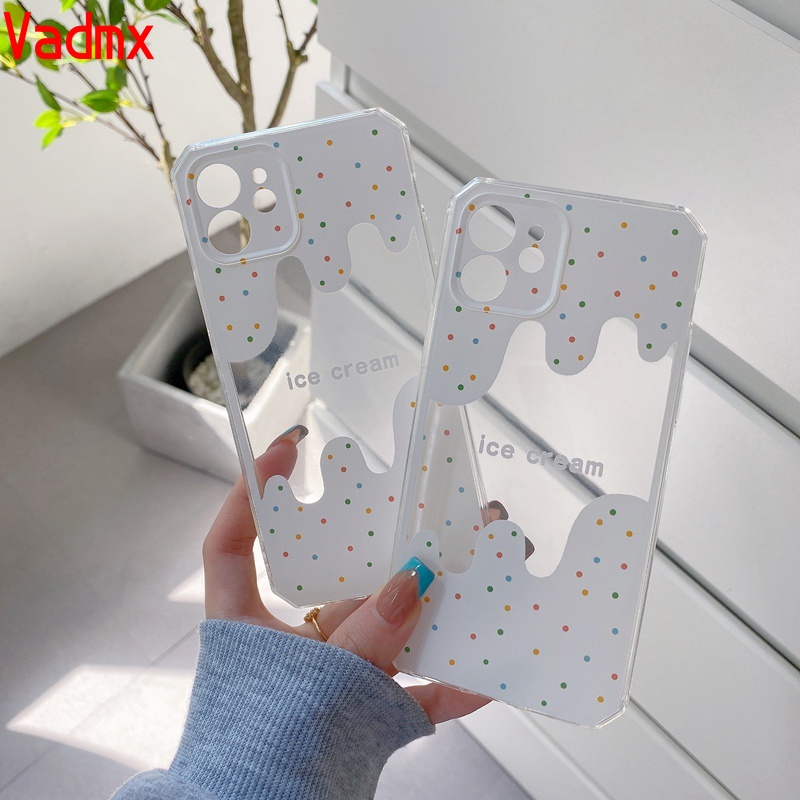 Summer Melting Ice Cream Casing Samsung Galaxy S21 S20 Ultra Plus FE Note 20 Ultra 10 S10 Lite Plus Clear Case Transparent Cute Soft Cover
