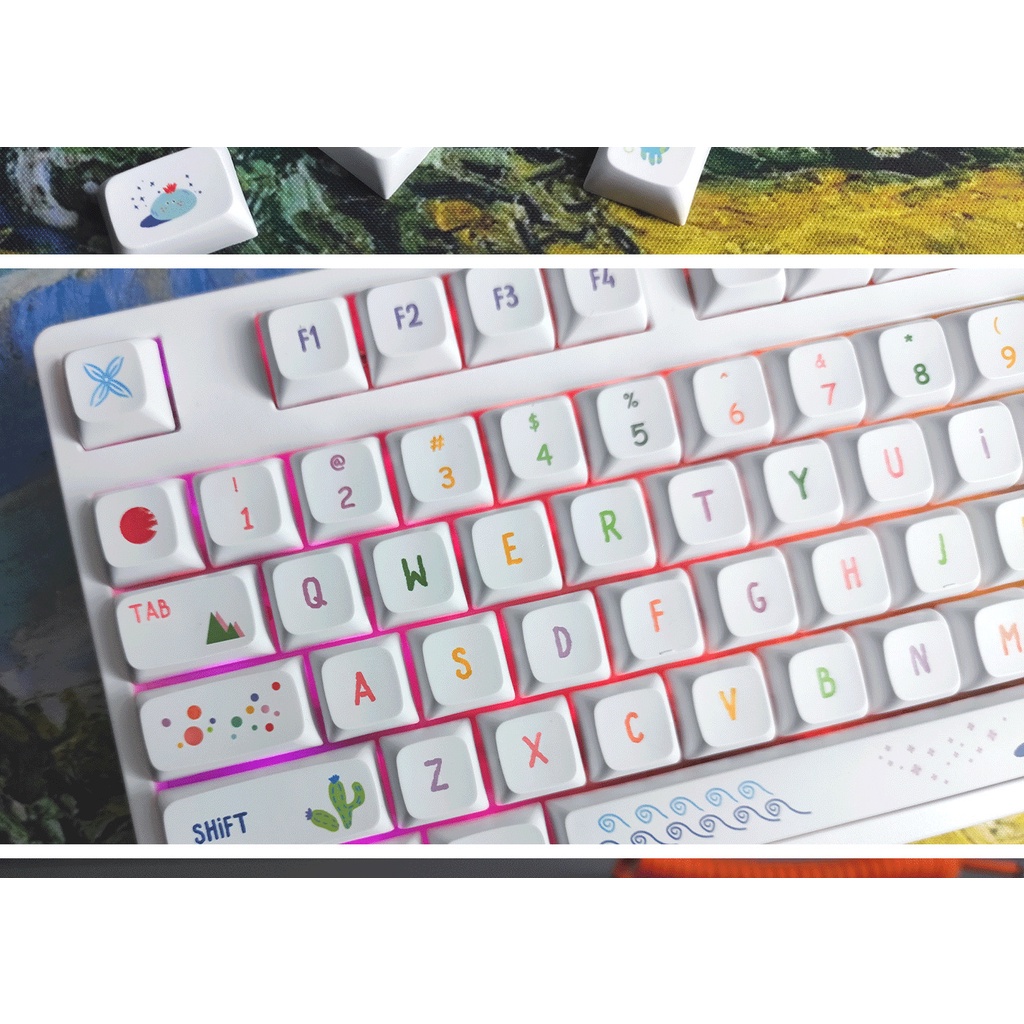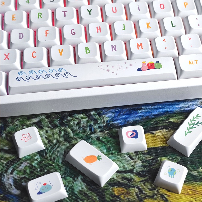Summer Painted Theme Sublimation Customized Unique Cute Keycap Mechanical Keyboard XDA Height PBT Small Full Set