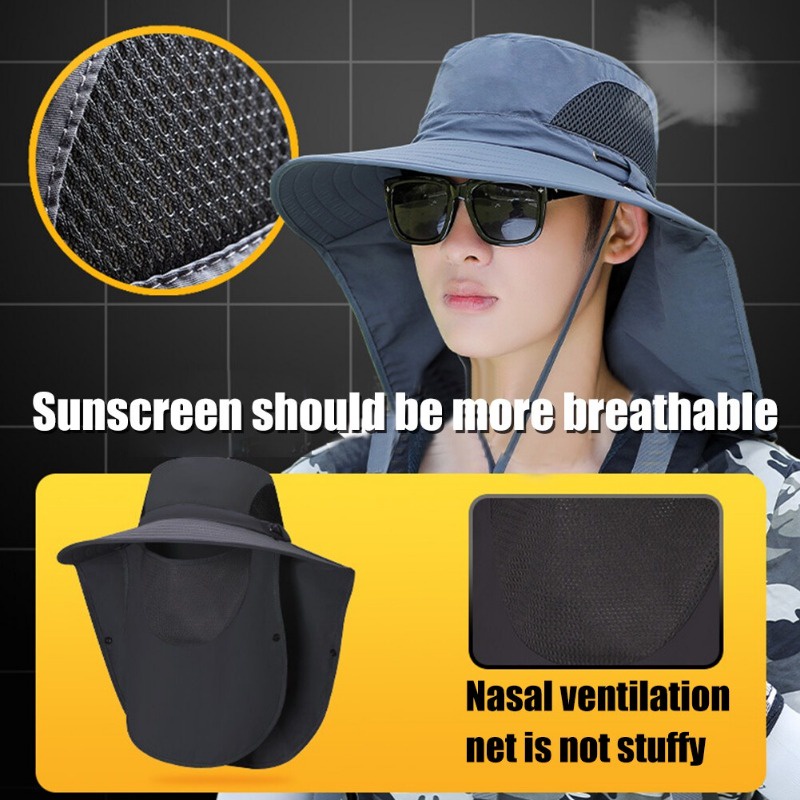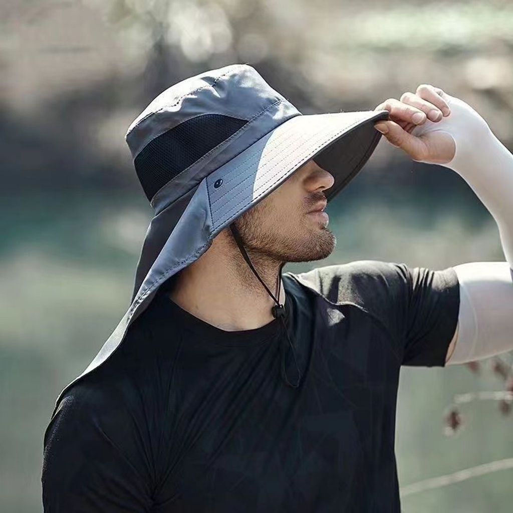 Summer Sun Hats UV Protection Outdoor Hunting Fishing Cap for Men Women Hiking Camping Visor Bucket Hat Neck Flap Fisherman HatOUYOU-PH