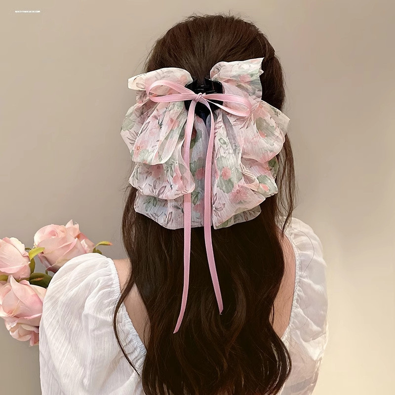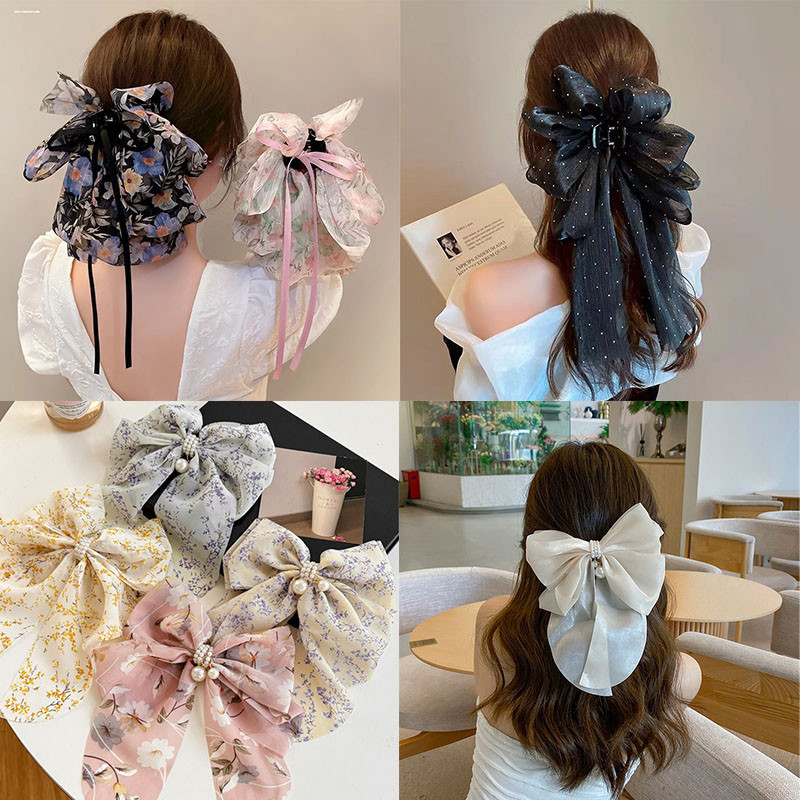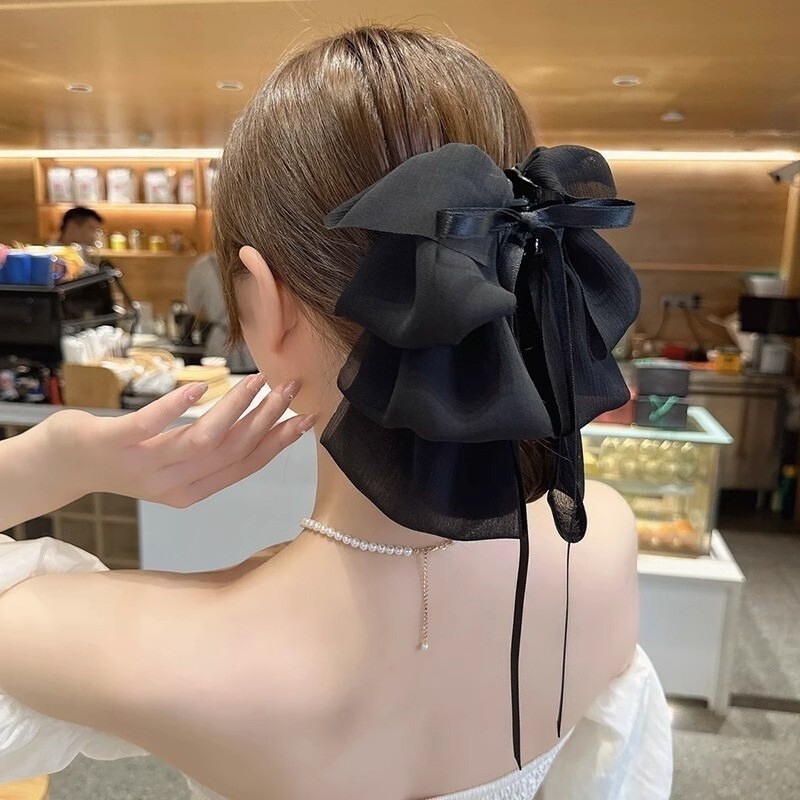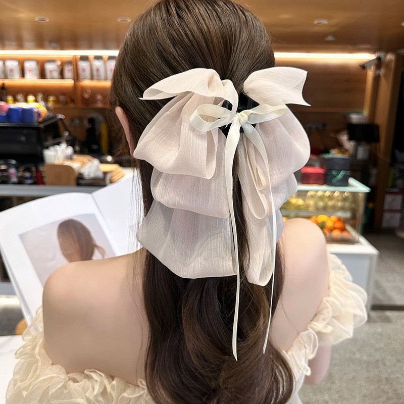 Summer Super Fairy Bow Ribbon Large Hairpin Female Hairpin Back Head Grab Clip One-word Clip Headwear