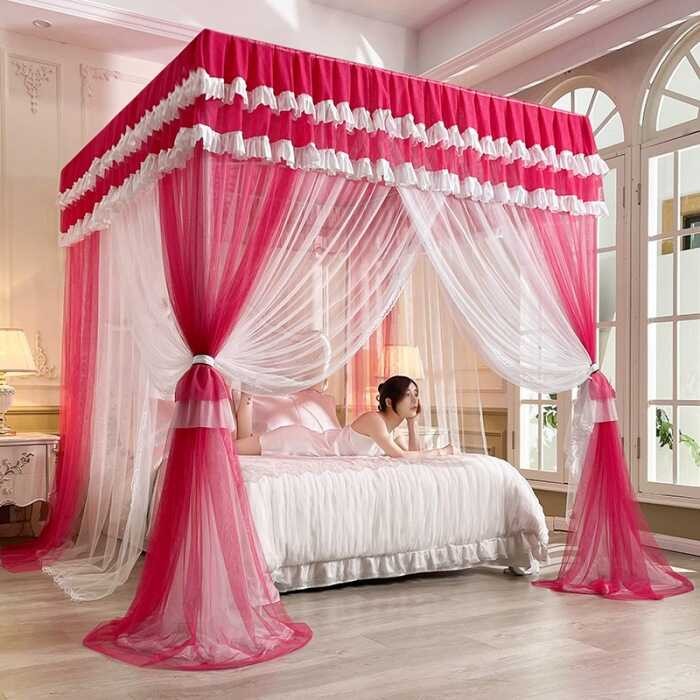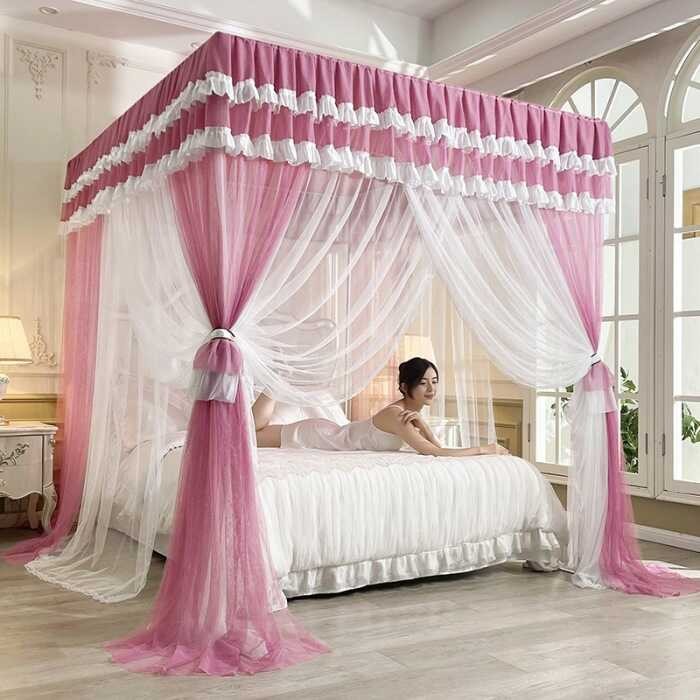 Summer Two Layer Palace Mosquito Net With Frame Princess Bed Canopy Nets Three-Door Bedroom Curtain