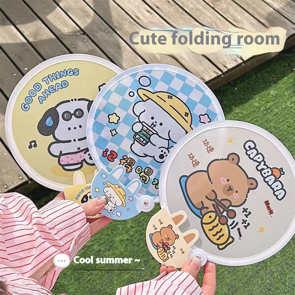 Summer new cute cartoon dog series folding group fan portable fan travel cool folding fan students