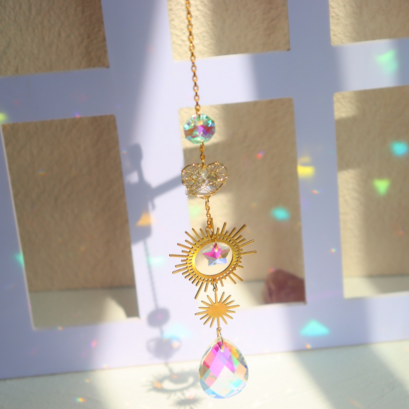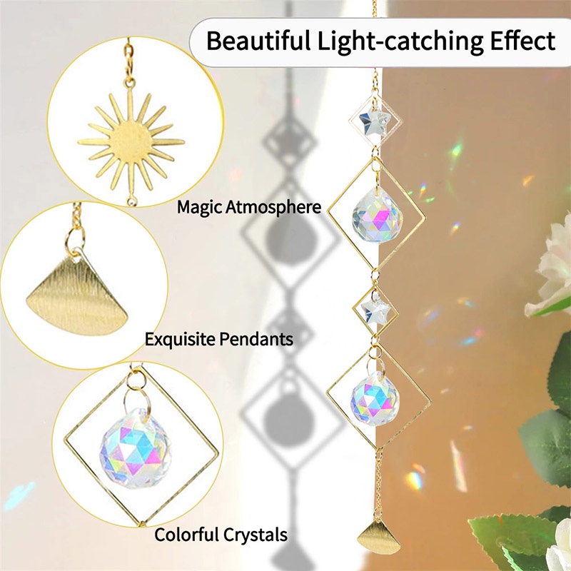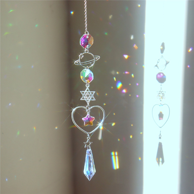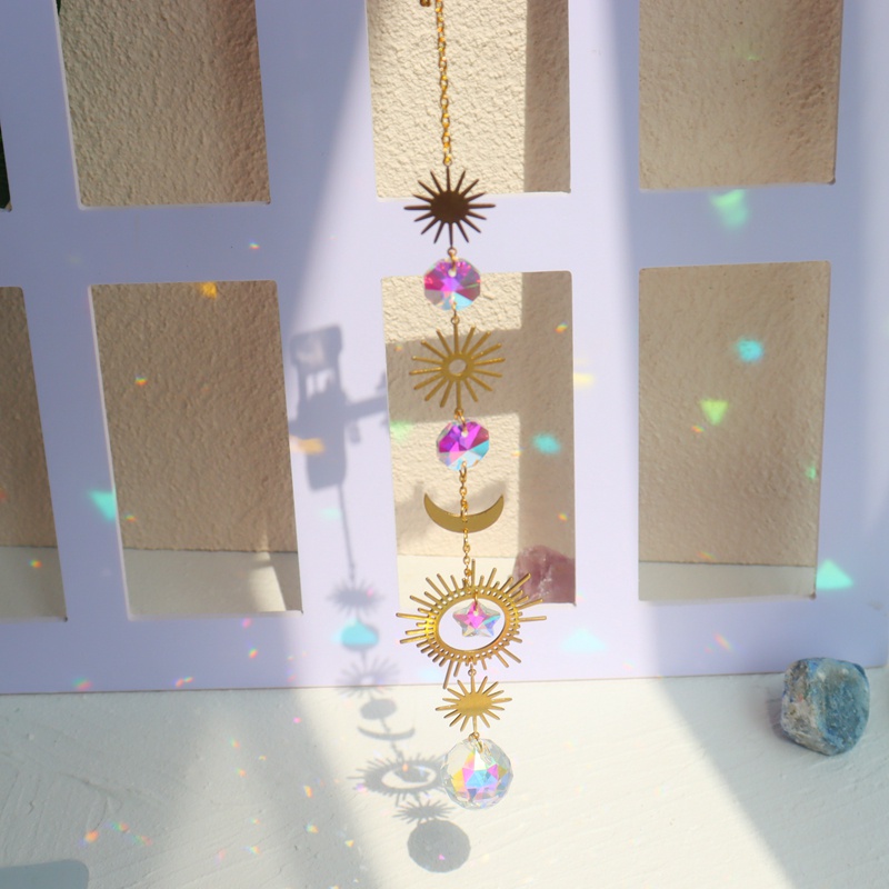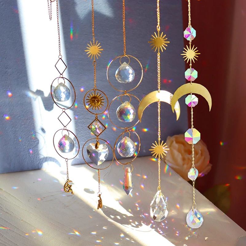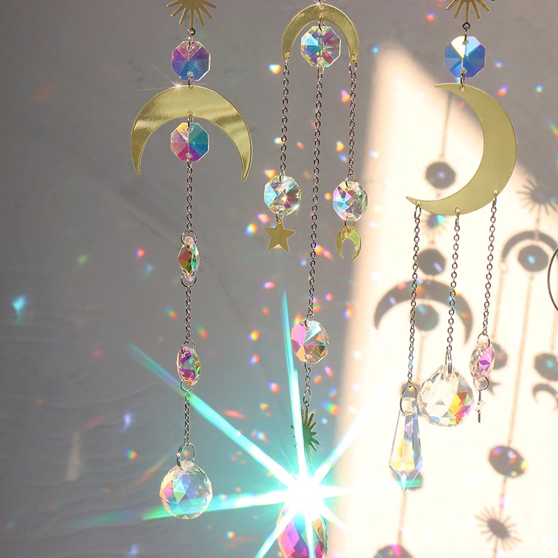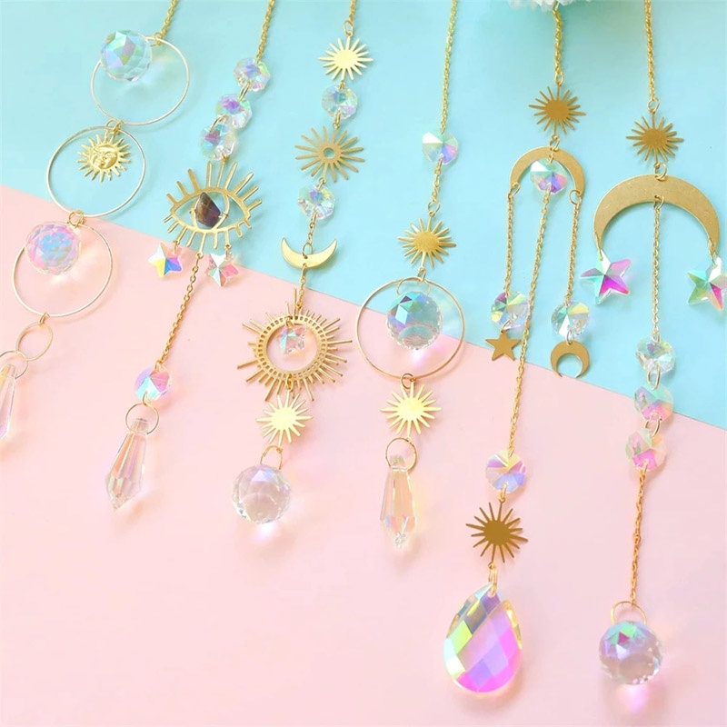 Suncatcher Crystal Prism Window Wind Chimes Hanging Pendant Rainbow Star Moon Catcher Octagon Beads Jewelry Cristal Home Decor