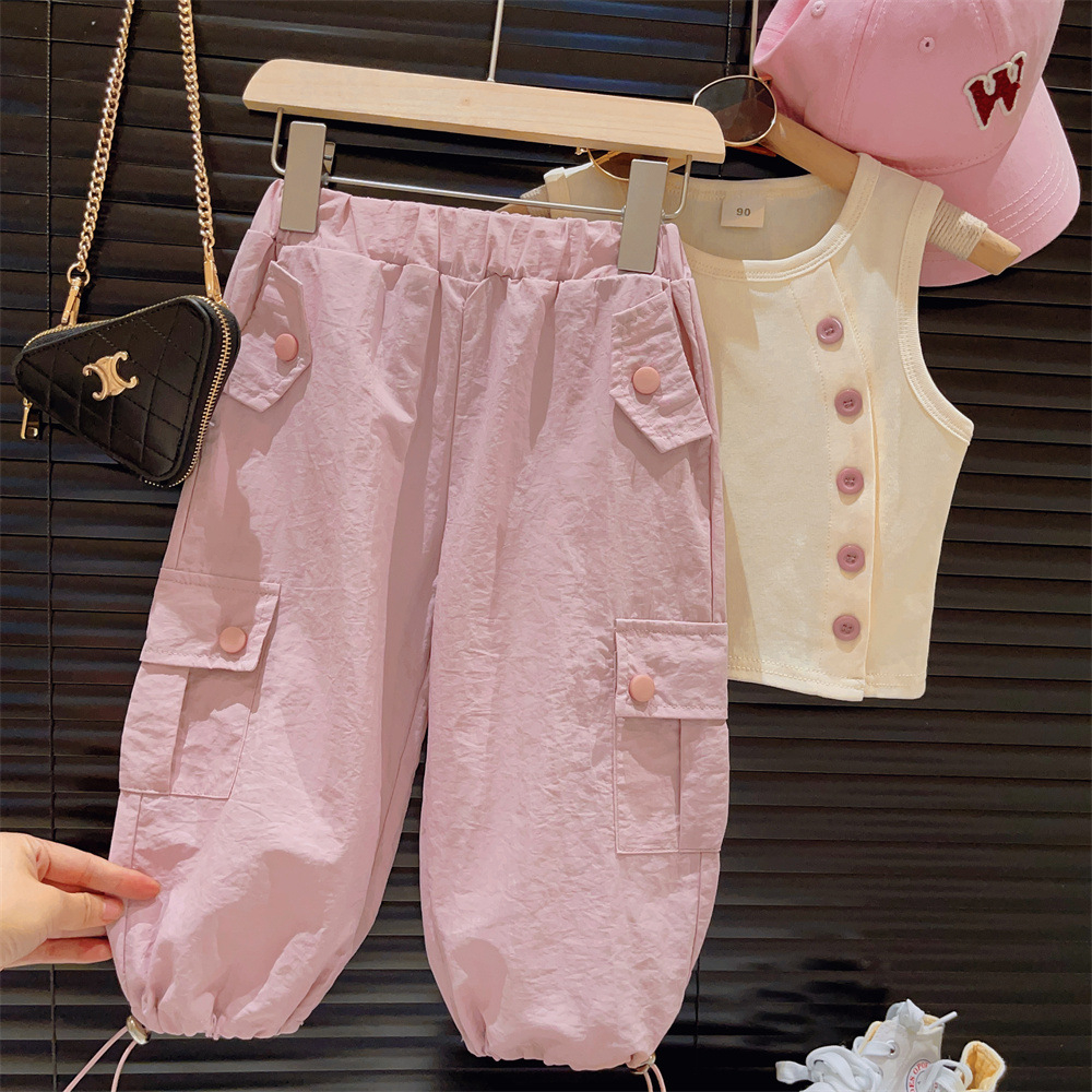 SUNDAY KIDS Terno for kids girl Girls summer outfit irregular Sleeveless suit vet Cargo pants