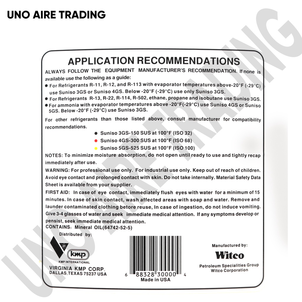 Suniso Oil 3GS, 4GS, 5GS Refrigeration Oil 1 US Gal. (3.78L) Made in USA