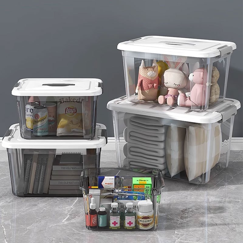 Sunlife Transparent Storage Box Large Capacity Snack Toy Book Cloth Organzier Plastic Box Portable Container with Handle
