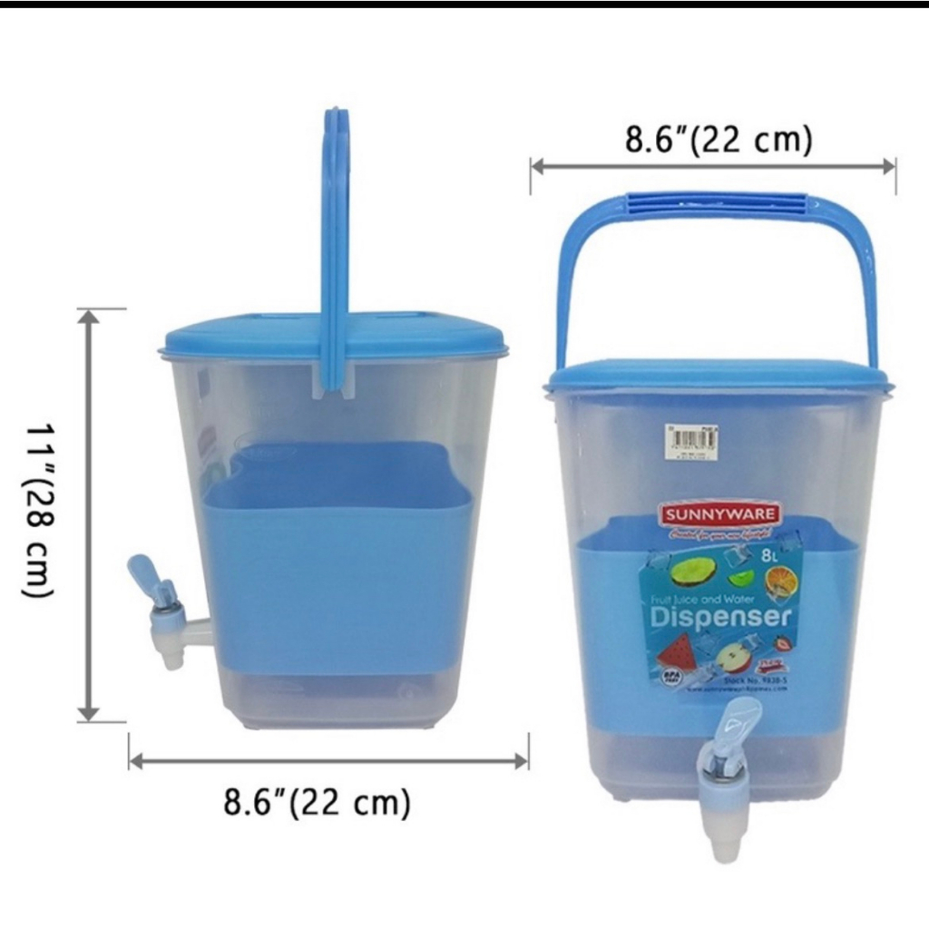 SunnyWare Water Jug / Water Dispenser 8Liters/2 GAllon with Faucet & Stand (9838s) Random Color