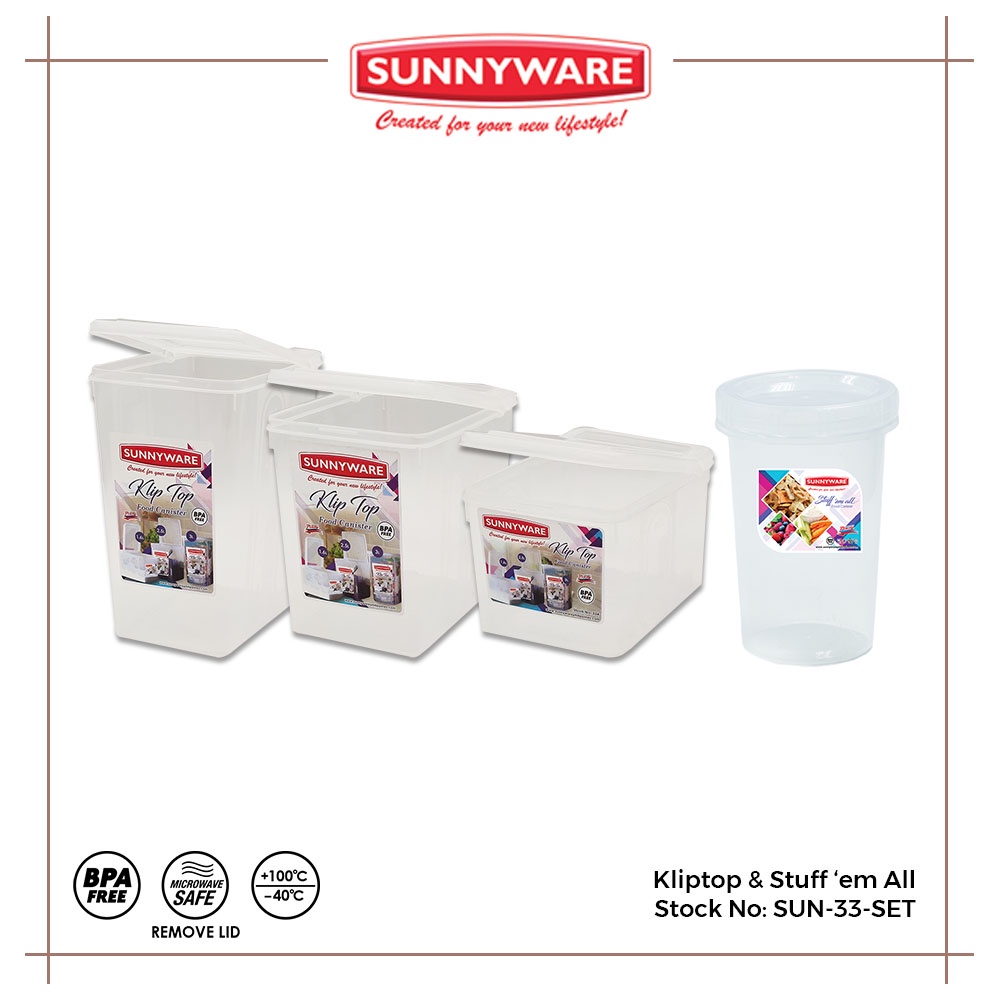 Sunnyware 336 Kitchen Organizer set kliptop & stuff em all | Klip Top Canister | Plastic Ware