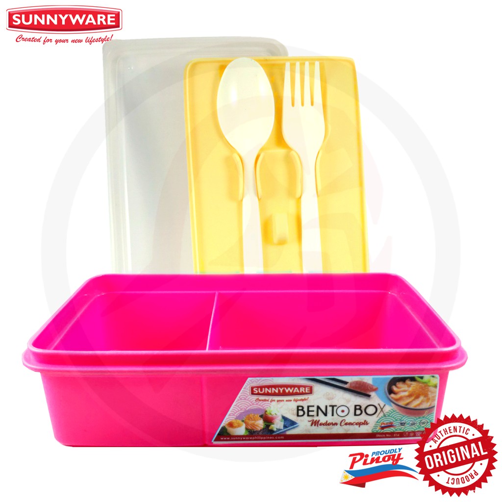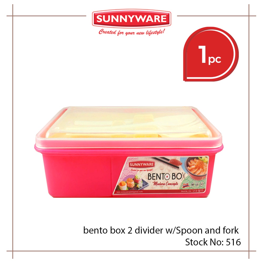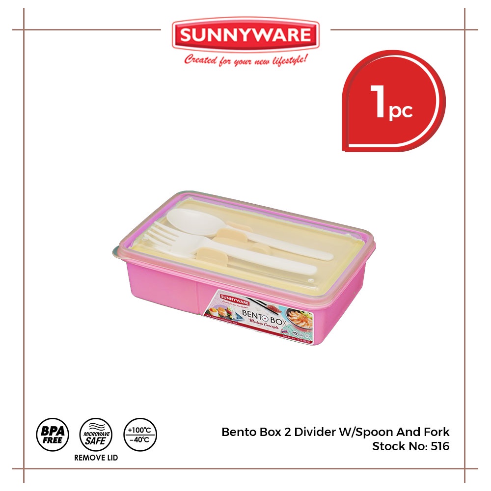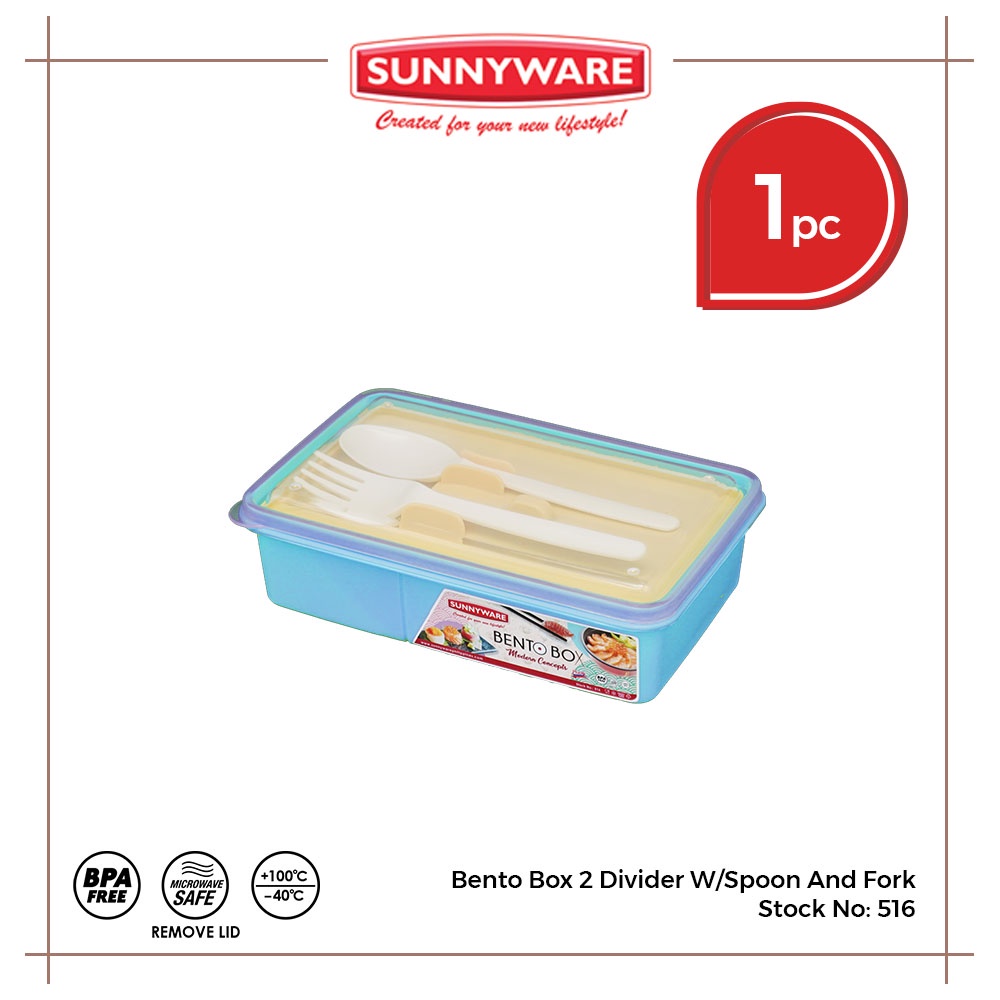 Sunnyware 516 Bento Box w/ divider lunch box with spoon & fork