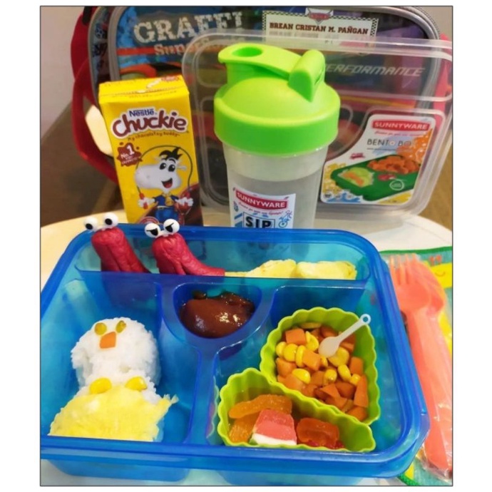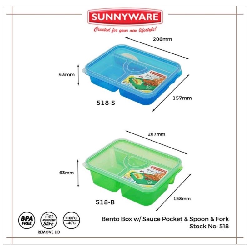 Sunnyware #518-Small & Big BENTO BOX with Sauce Pocket & Spoon & Fork Lunch Box