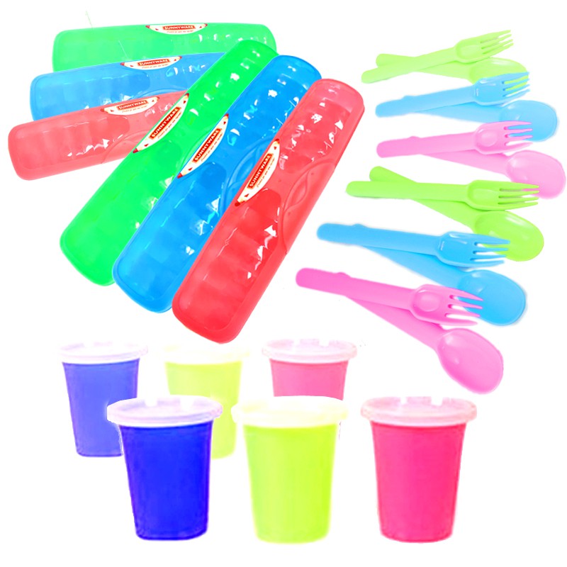 Sunnyware Party Set 1 (6x2012 spoon & fork, 6x909 multipurpose travel case, 6x9636-c-a cup w/ cover)