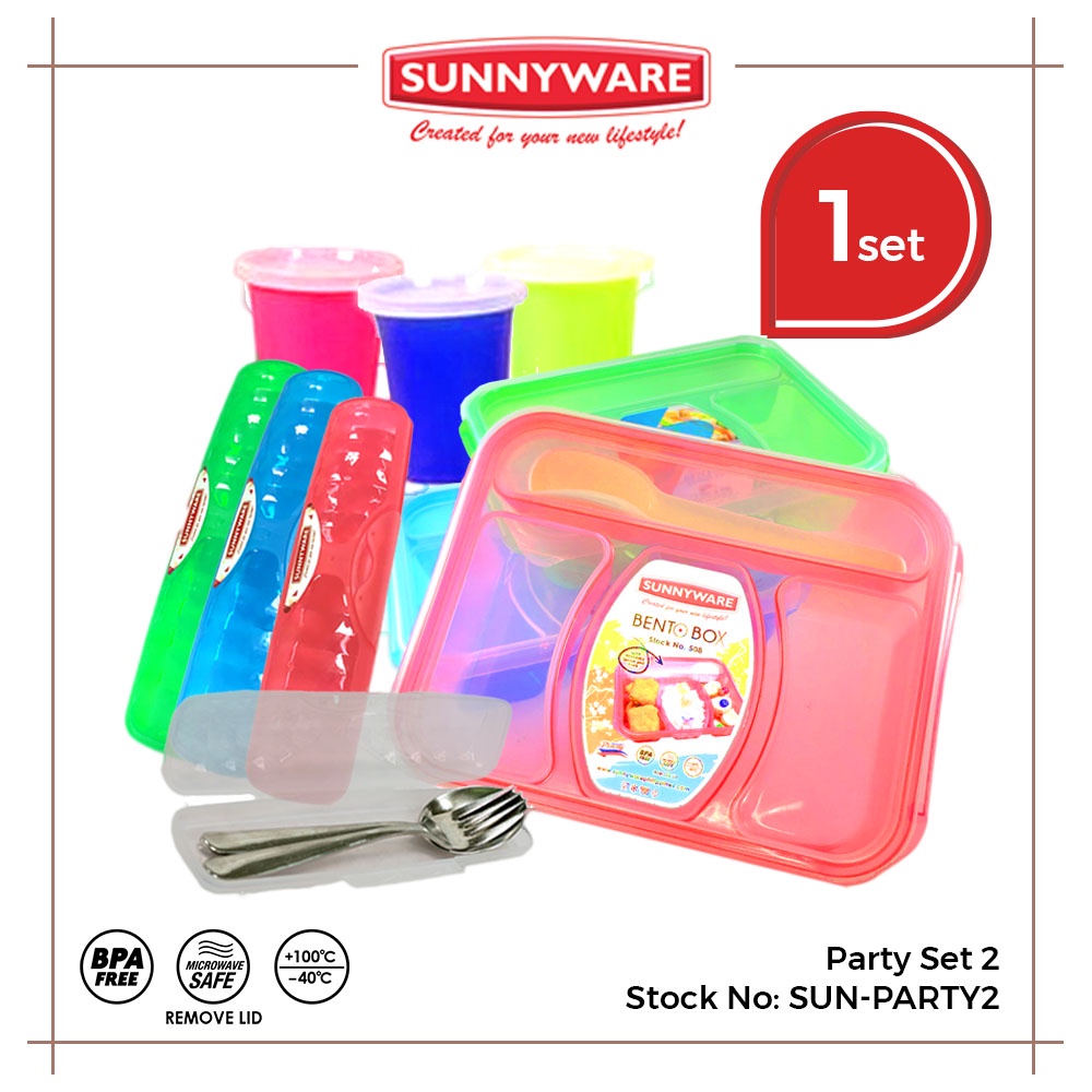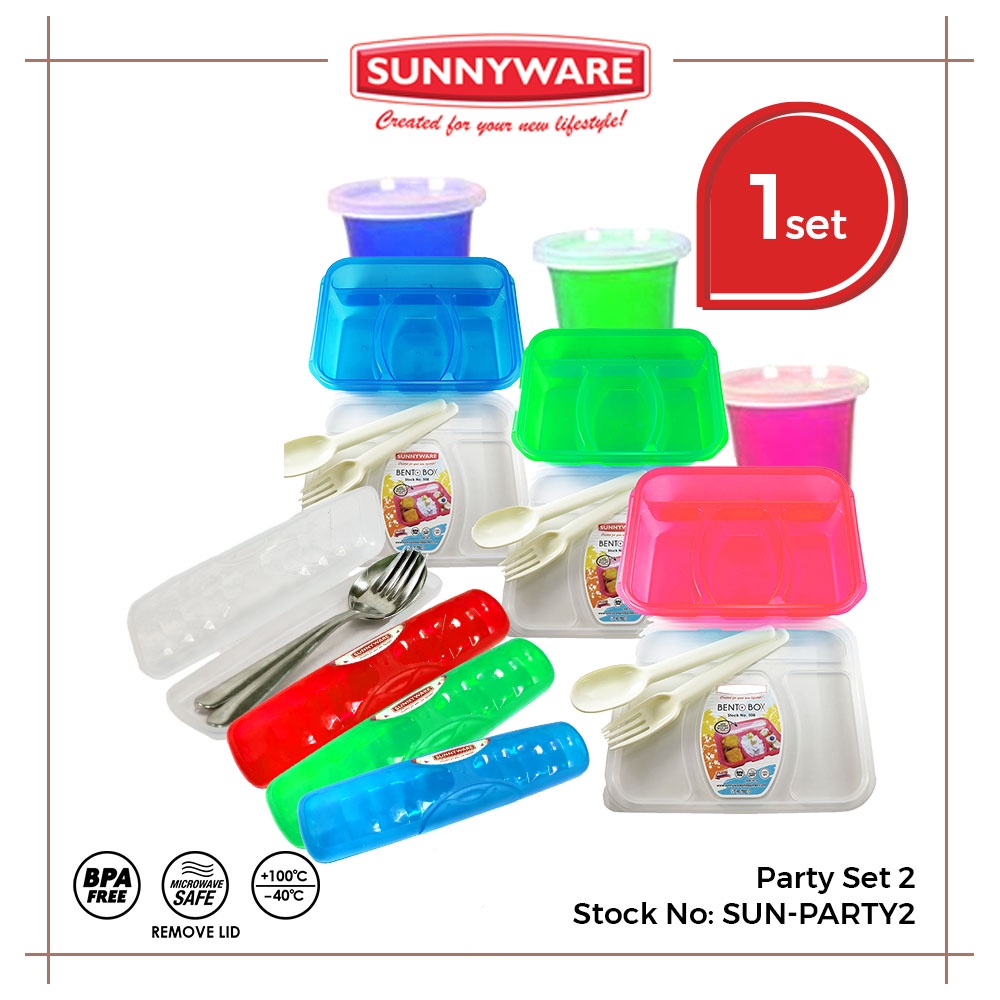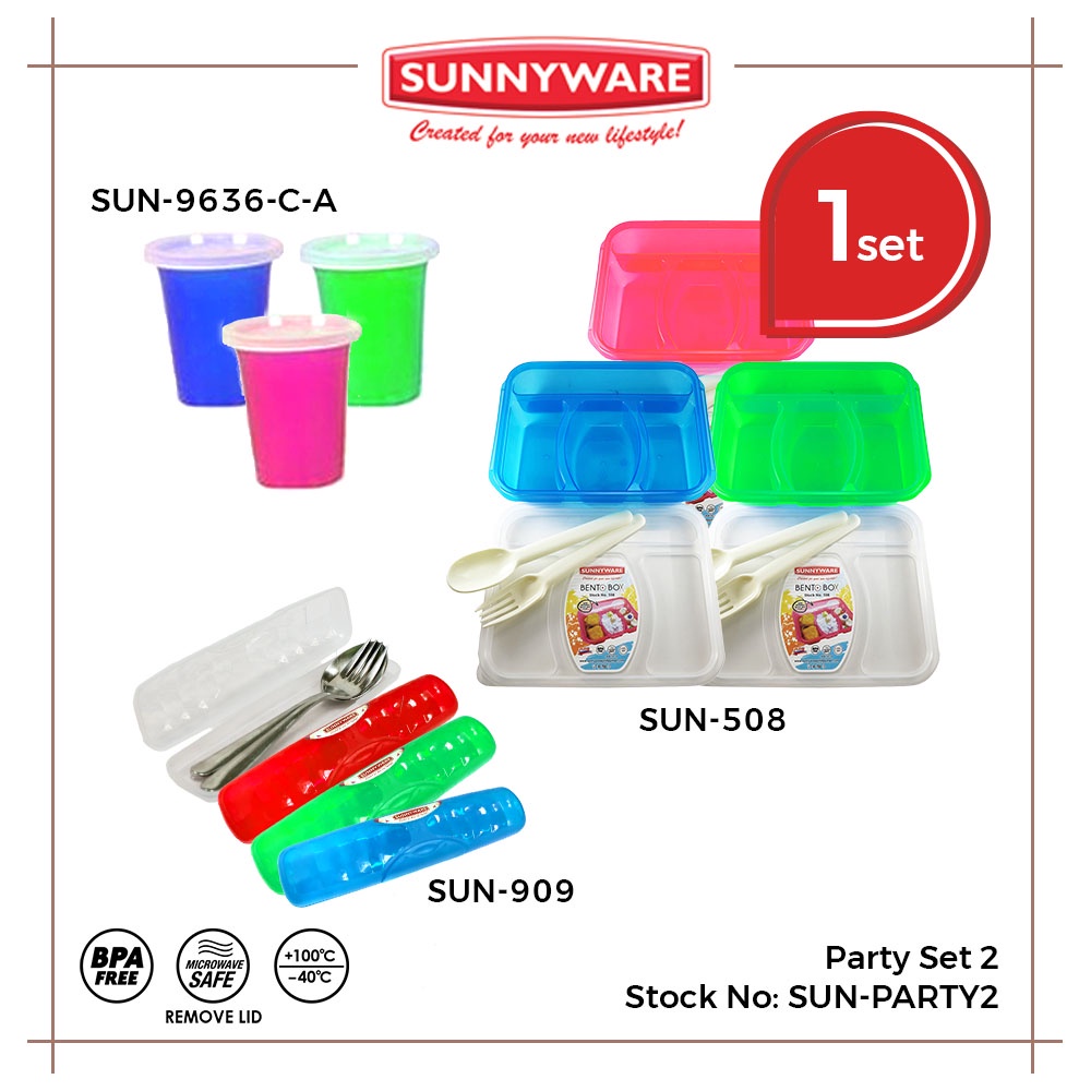 Sunnyware Party Set 2 (3 x 508 bento, 4 x 909 multipurpose travel case, 3 x 9636-c-a cup w/ cover)