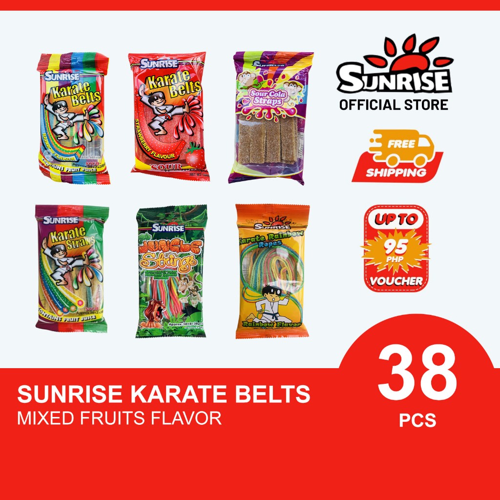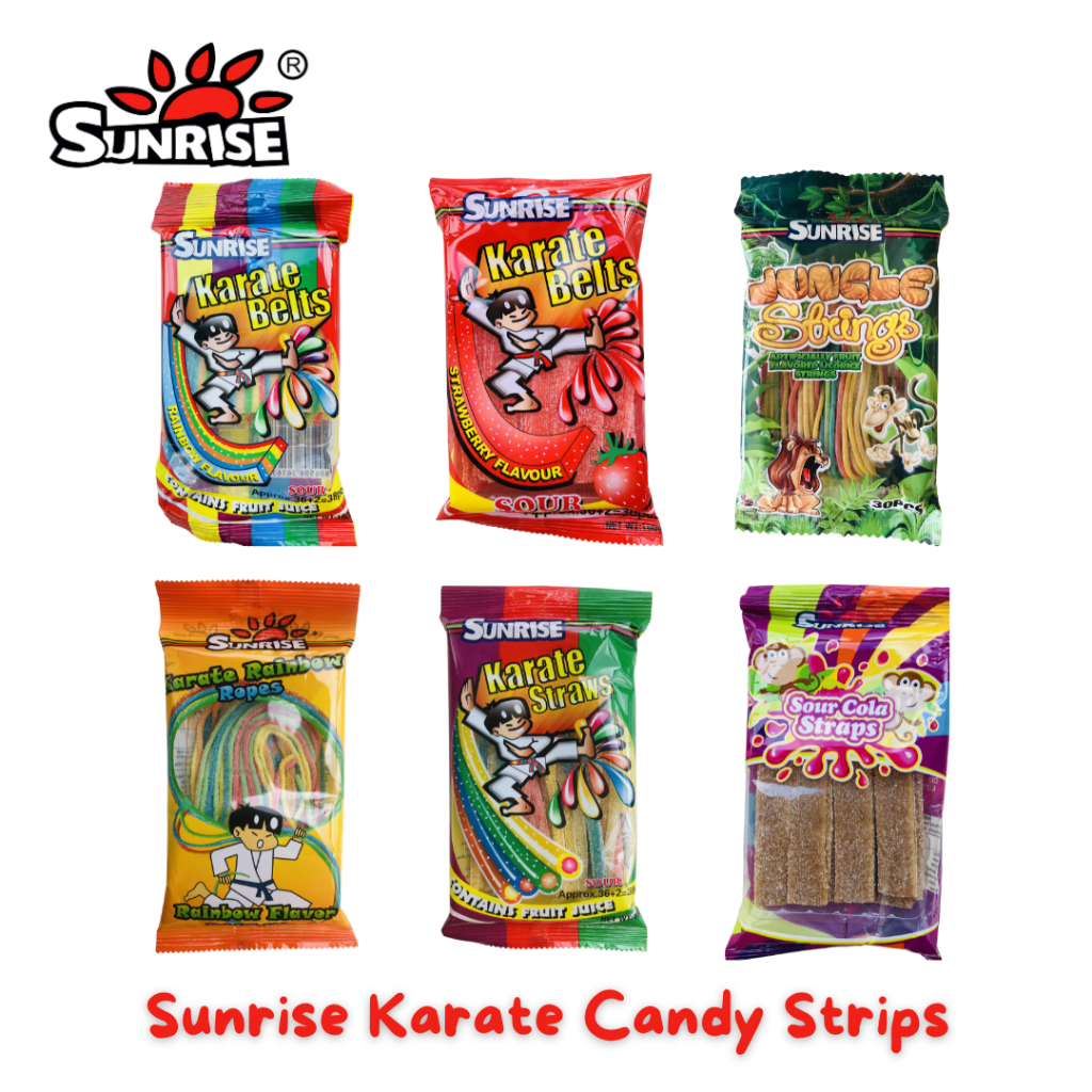 Sunrise Karate Belts (Rainbow, Strawberry, Ropes, Cola, Sour Straw, Jungle String) 160 grams
