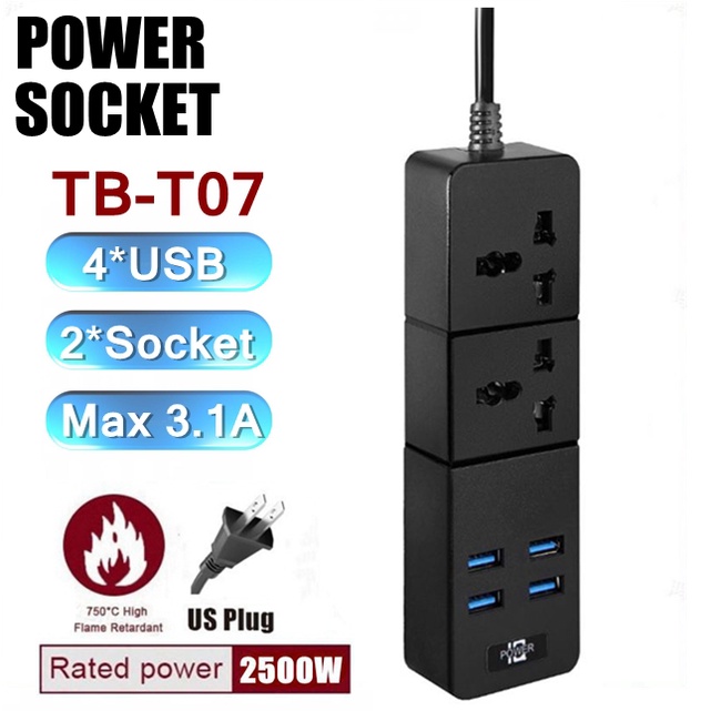 Sunsonic Tb-T07 3.1A Universal Power Socket Extension With 2 Ac Sockets And 4 Usb Ports