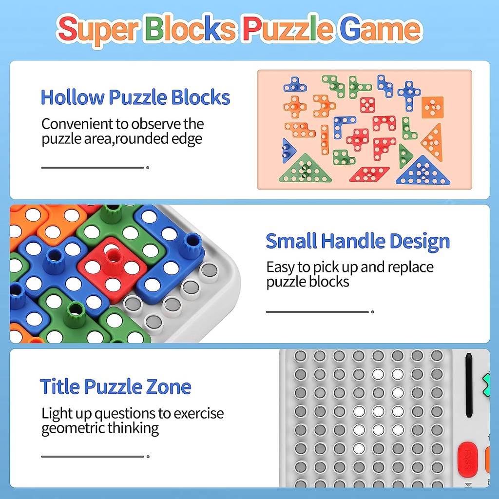 Super Blocks Puzzle Games with 1000+ Challenges Brain Teaser STEM Toys, Multiple Blocks Pattern Matching Game for Kids Teens Boys Girls Birthday Gifts Travel Games