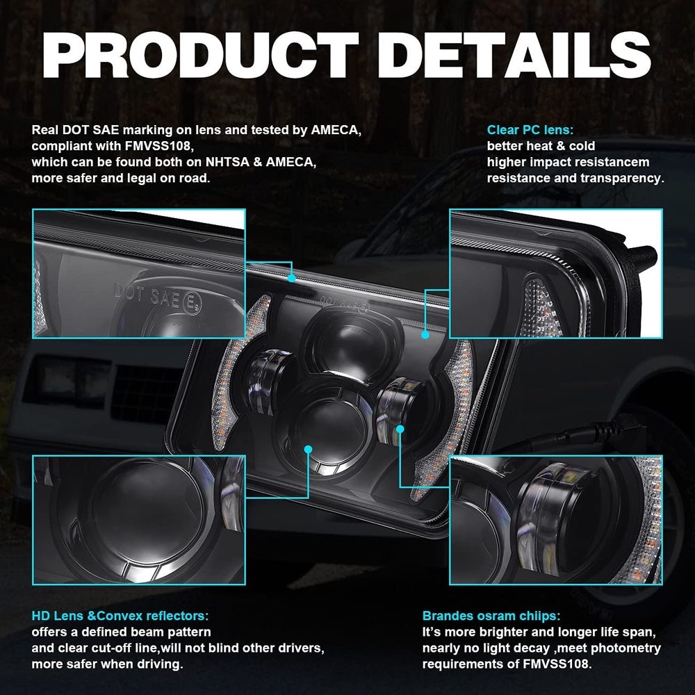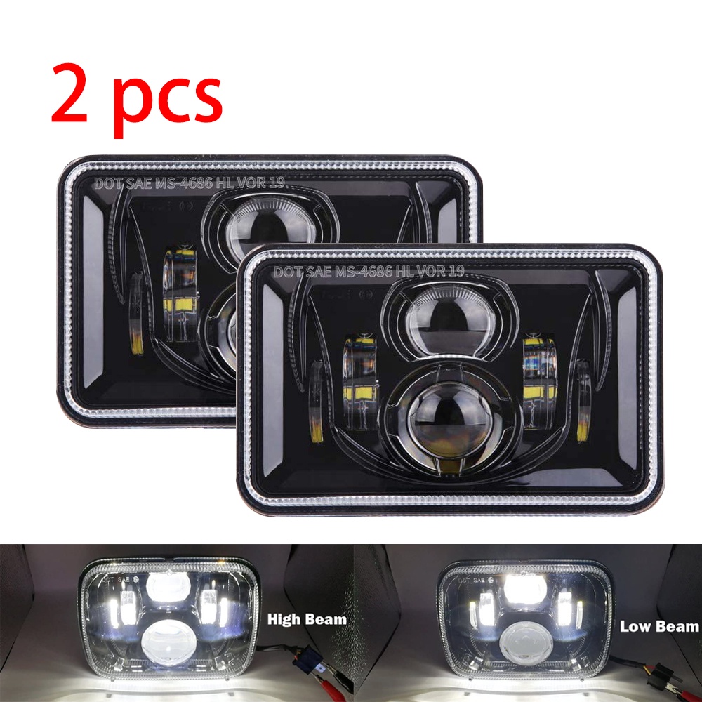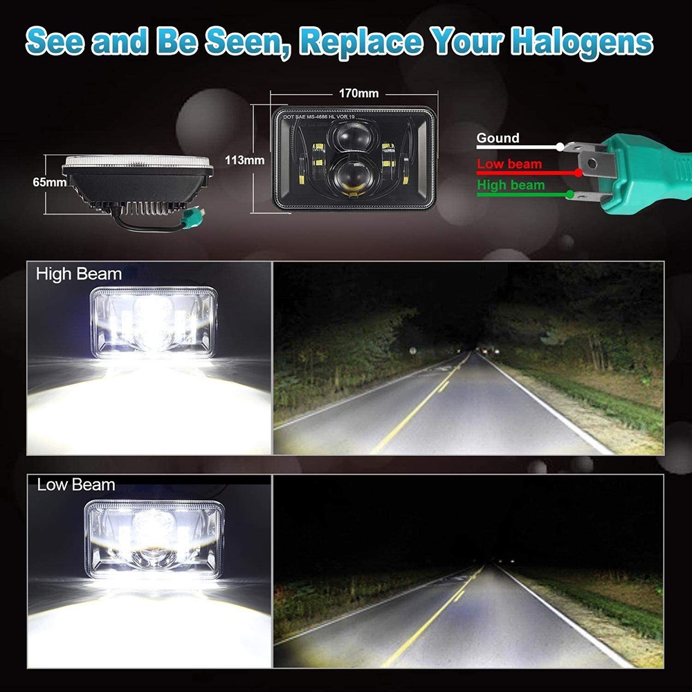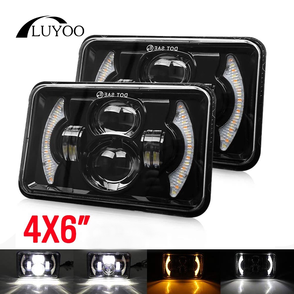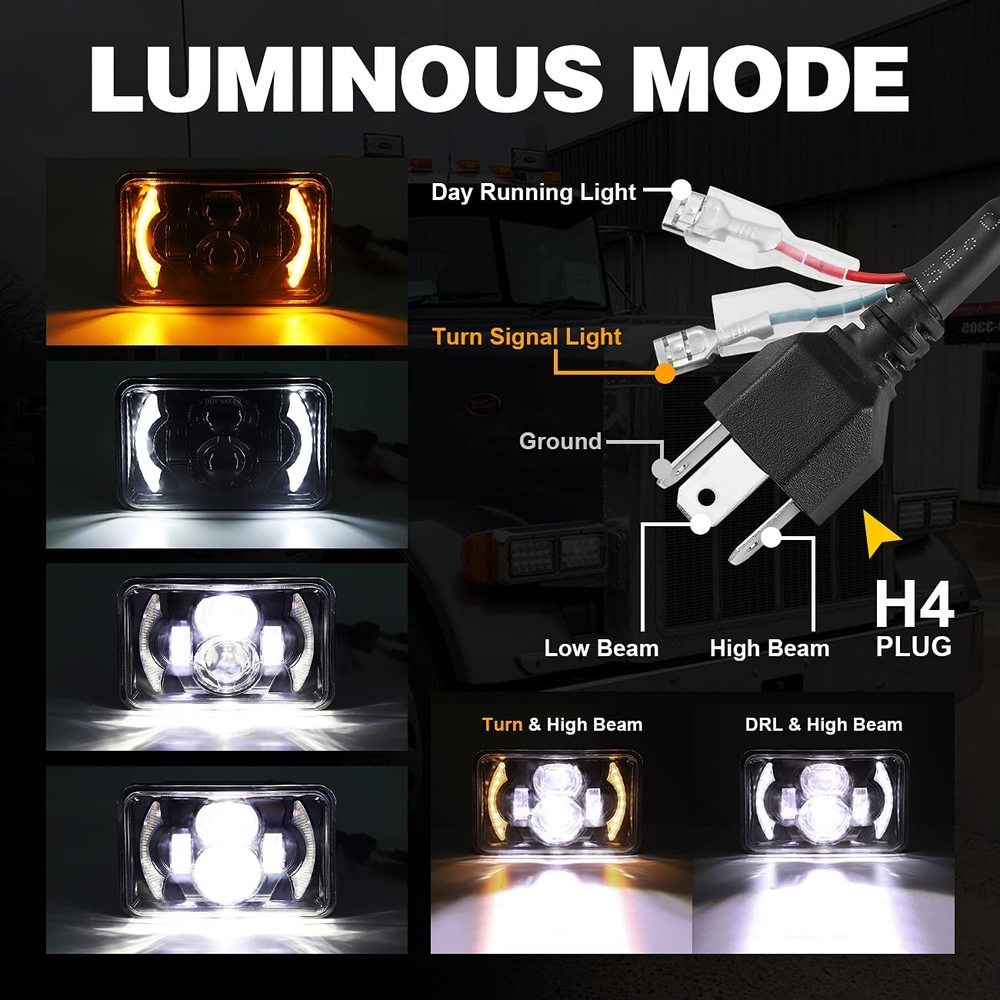 Super Bright 4x6" Inch LED Headlights Hi/Lo Beam with White Amber DRL for H4651 H4652 H4656 H4666 Car Truck Conversion Offraod Headlamp