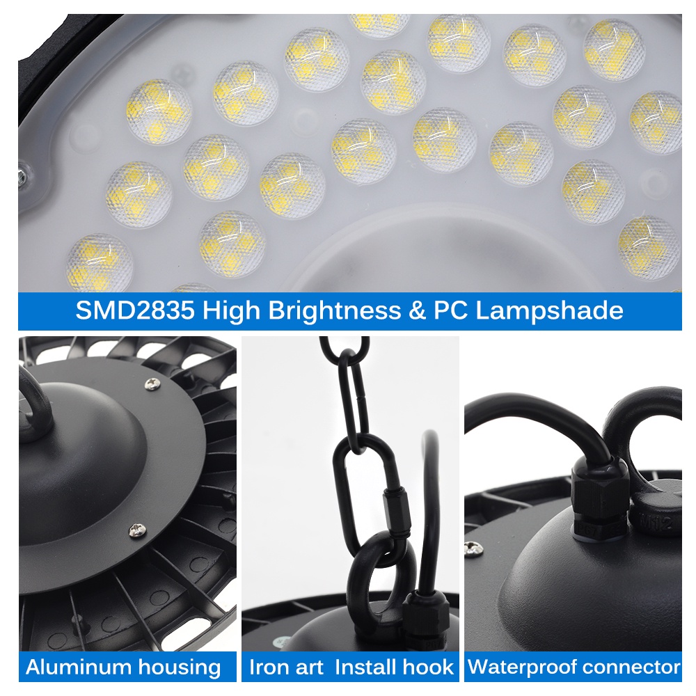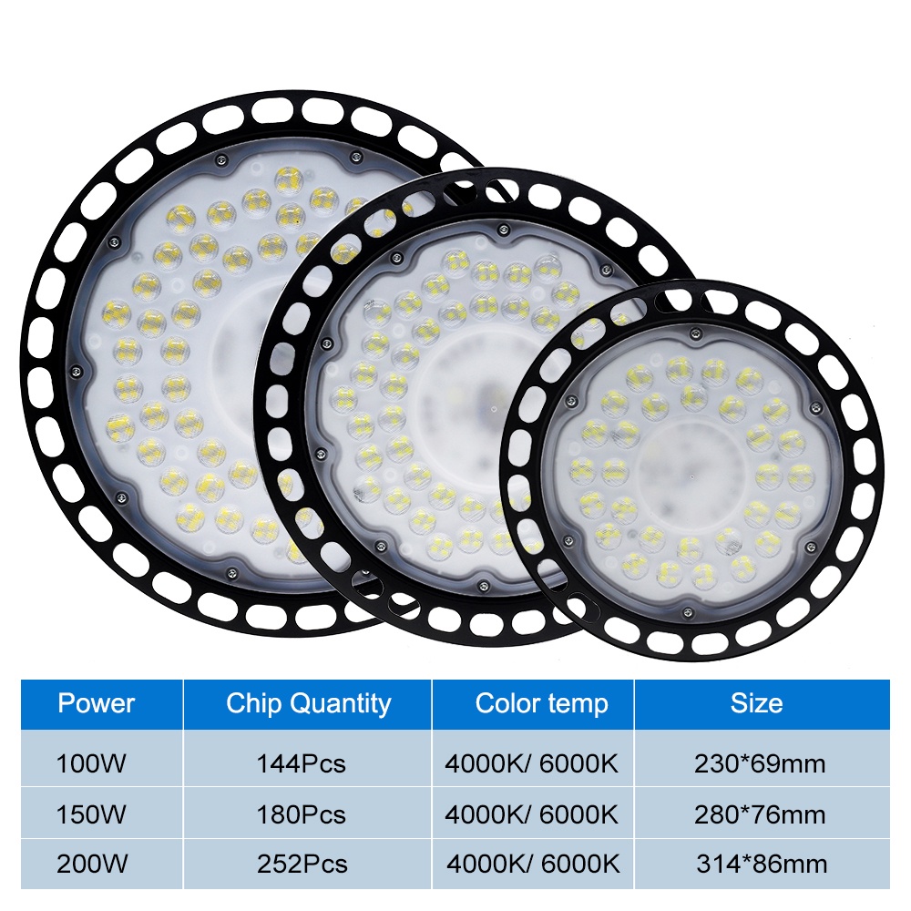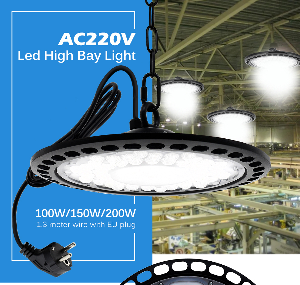 Super Bright UFO LED Lamp High Bay Lights 220V 100W 150W 200W Waterproof Commercial Industrial Lighting for Warehouse LED Garage Lamp