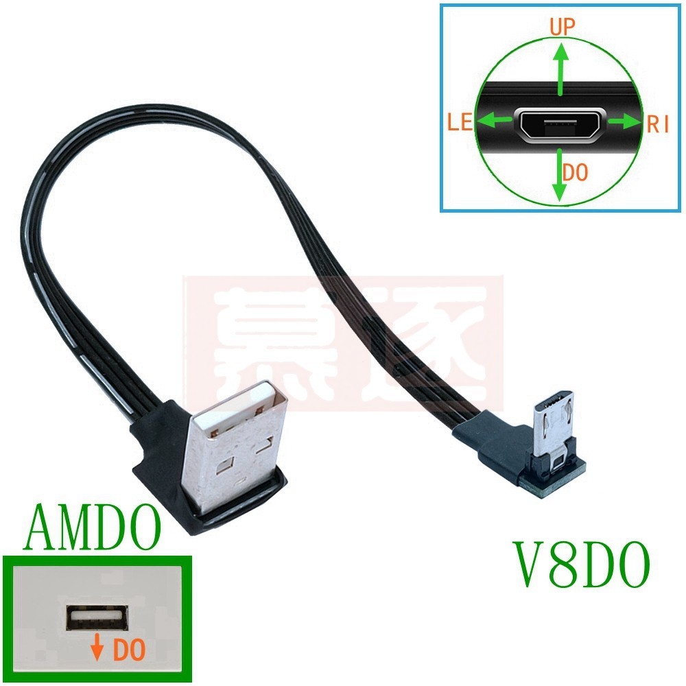 Super Flat Flexible Up & Down & Left & Right Angled 90 Degree USB Micro USB Male to USB Male Data Cable