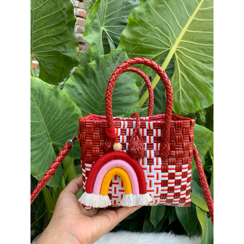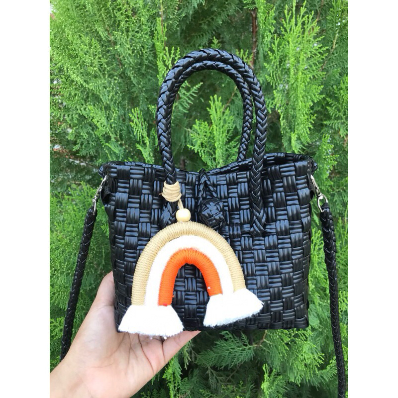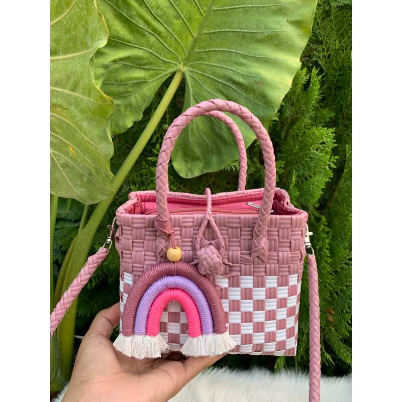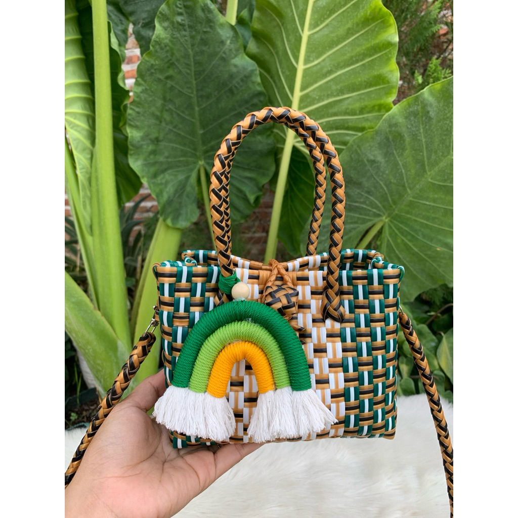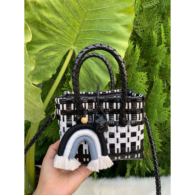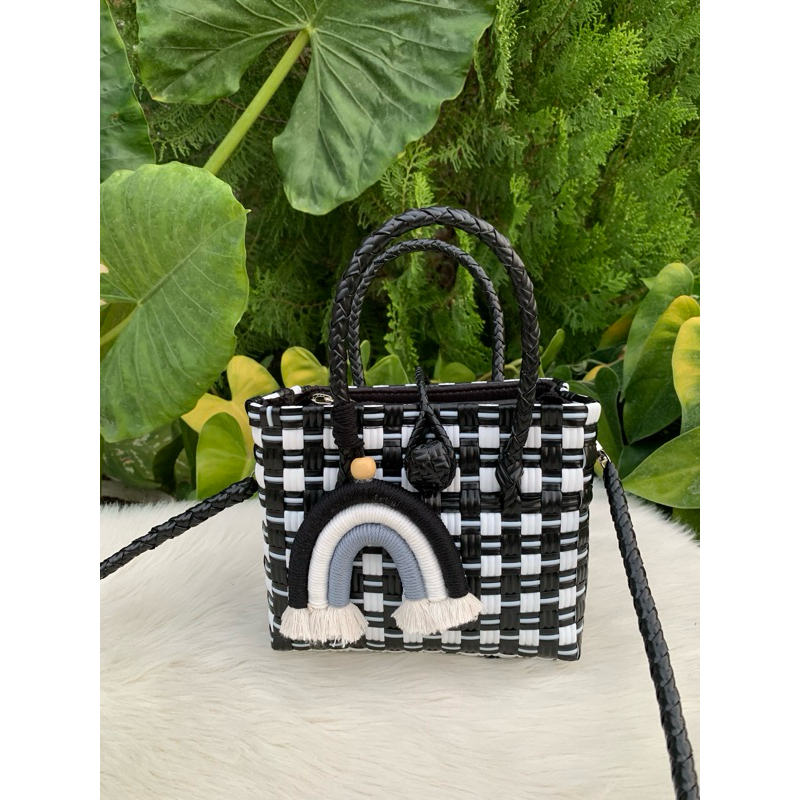 SUPER MINI ZIPPER FURING Sling Bag Wanita Plastic Woven Sling Bag hp