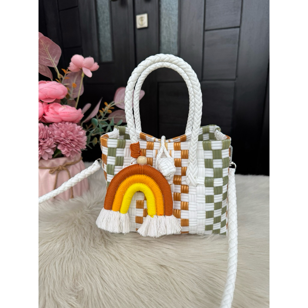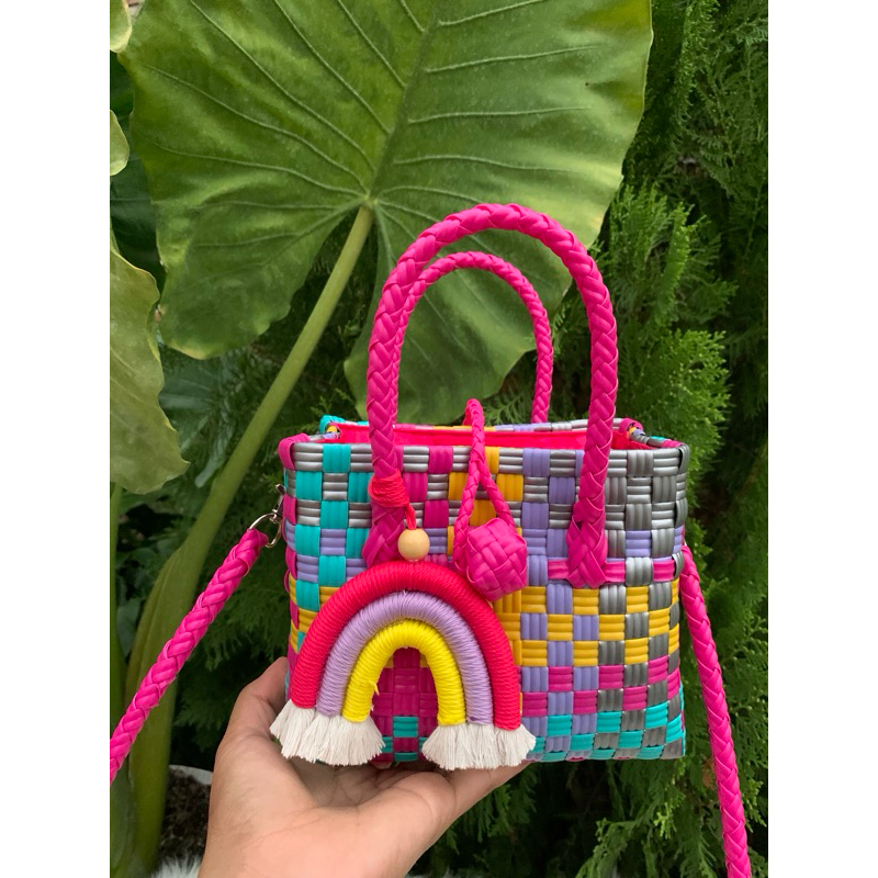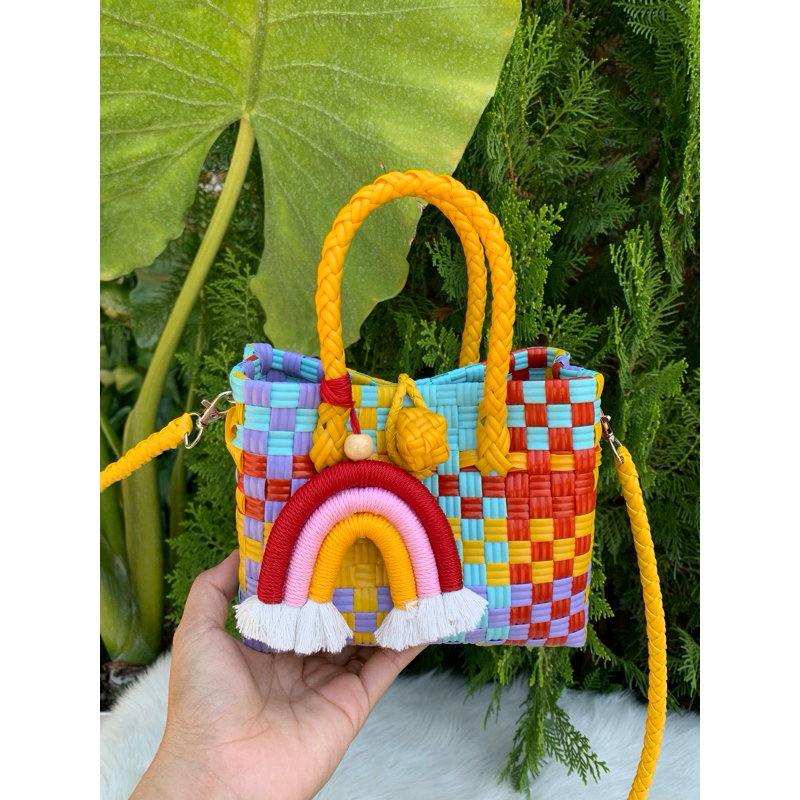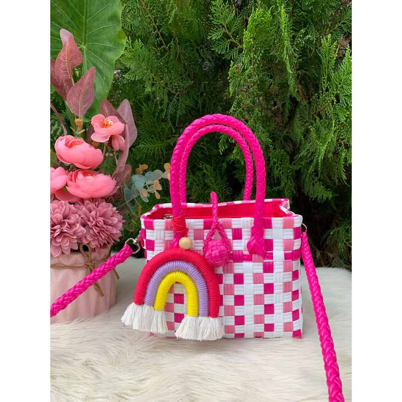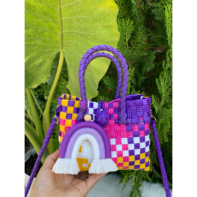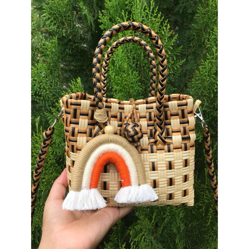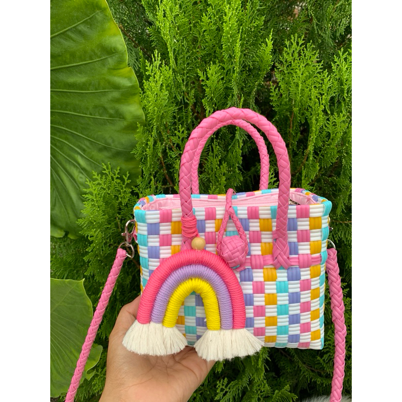 SUPER MINI ZIPPER FURING Sling Bag Wanita Plastic Woven Sling Bag hp