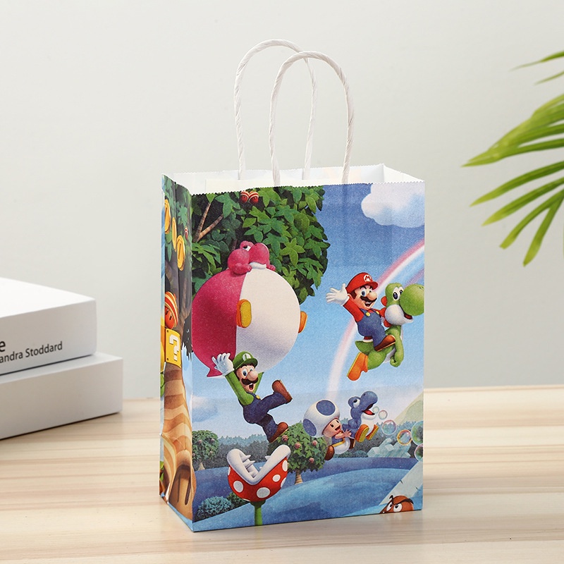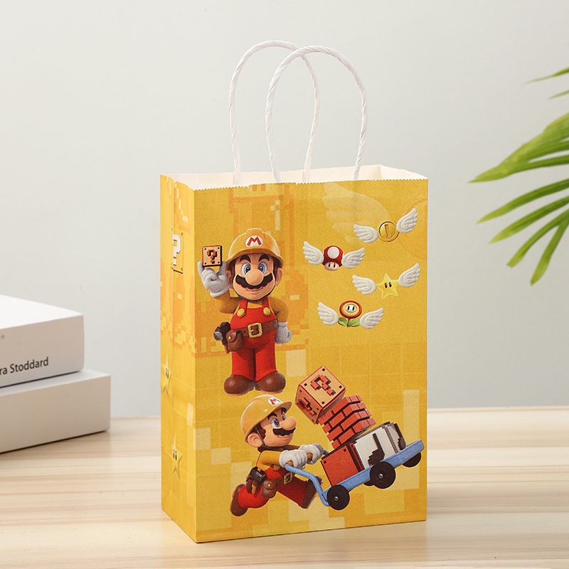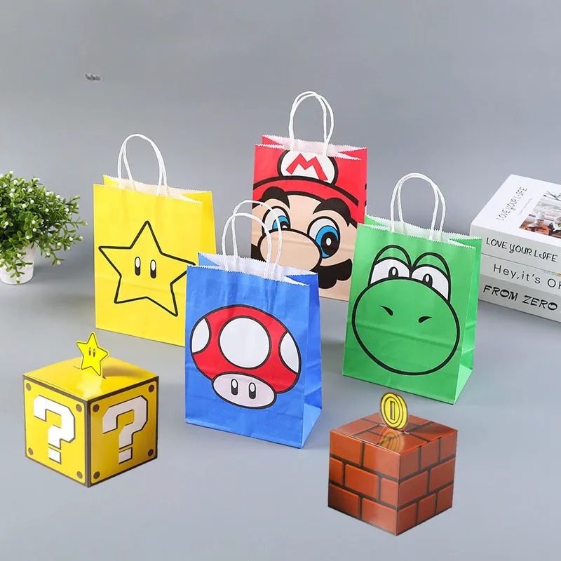 Super Mario Birthday Loot Bag Candy Box Anime Kraft Paper Pakcaging Candy Handheld Bag Cartoon Packing Kids Party Supplies